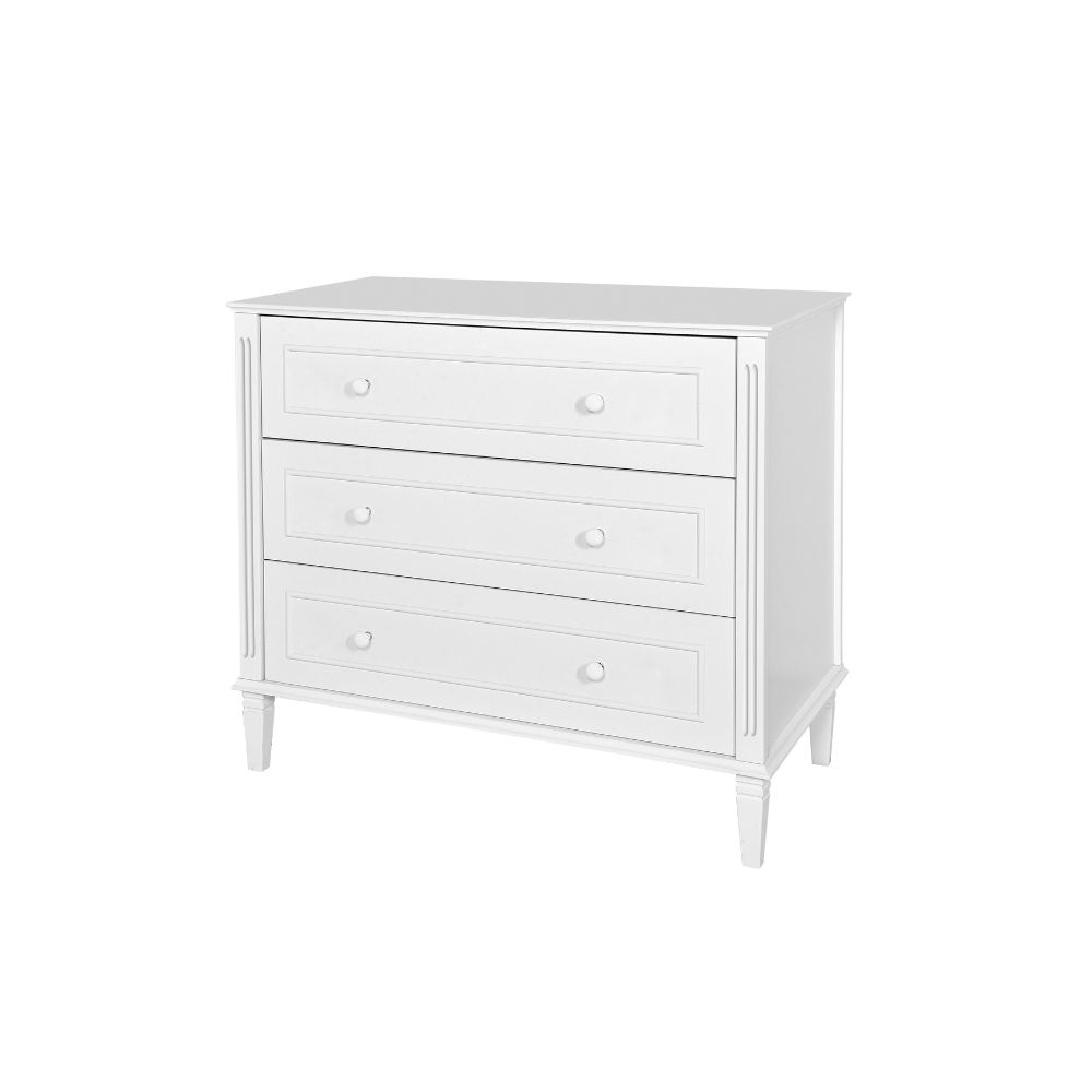 To, co wyróżnia kolekcję Bianka, to bezkompromisowa dbałość o szczegóły. Stylowe frezy oraz unikatowy, drewniany półwałek na frontach nadają bryle lekkości i luksusowego charakteru. Całość dopełniają porcelanowe gałki oraz ręcznie robione, wysokie nóżki, które są nie tylko piękną ozdobą, ale i praktycznym rozwiązaniem – dzięki nim z łatwością utrzymasz czystość pod meblem i odnajdziesz każdą zagubioną zabawkę.