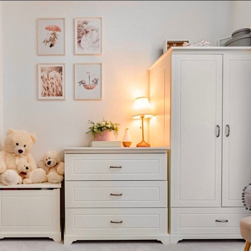 Kolekcja mebli dla dzieci Melody to połączenie klasyki ze stylem rustykalnym. Sprawdzi się zarówno w pierwszych latach życia dziecka, jak i u przedszkolaka czy nastolatka. Kolekcję mebli dla dzieci Melody zdobią delikatne frezy, co nadaje jej elegancji i unikalnego charakteru. Szerokie uchwyty w kolorze starego srebra współgrające z całą kolekcją. Meble osadzone są na solidnym ozdobnym cokole. Uniwersalna biel zapewni harmonijne otoczenie, pozwoli ograniczyć bodźce wzrokowe, co jest istotne dla wypoczynku i dobrego samopoczucia dziecka.