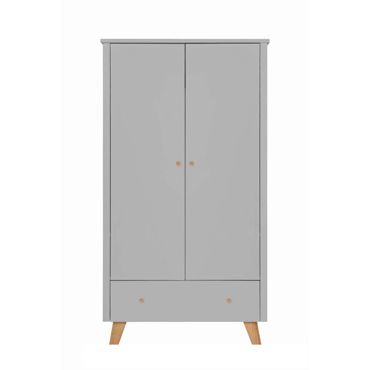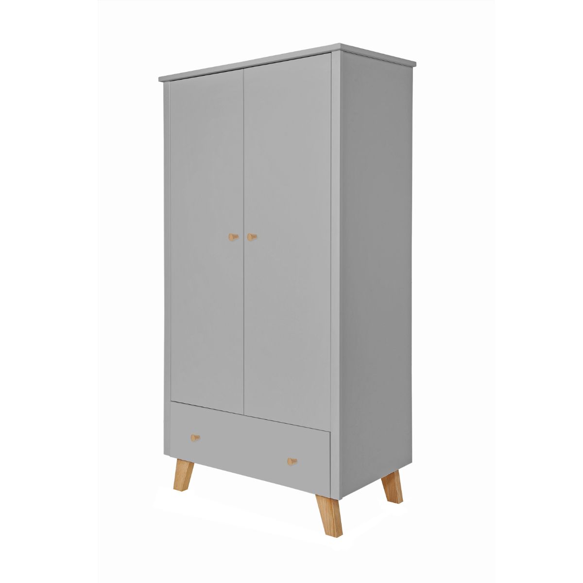 Praktyczna szafa do pokoju małego dziecka, przedszkolaka lub nastolatka. Model, który łączy funkcjonalność i oryginalne wzornictwo. Jakość bez kompromisów, która idzie w parze z nowoczesnym designem. Naturalne piękno drewna idealnie komponuje się z malowanymi, szarymi elementami.