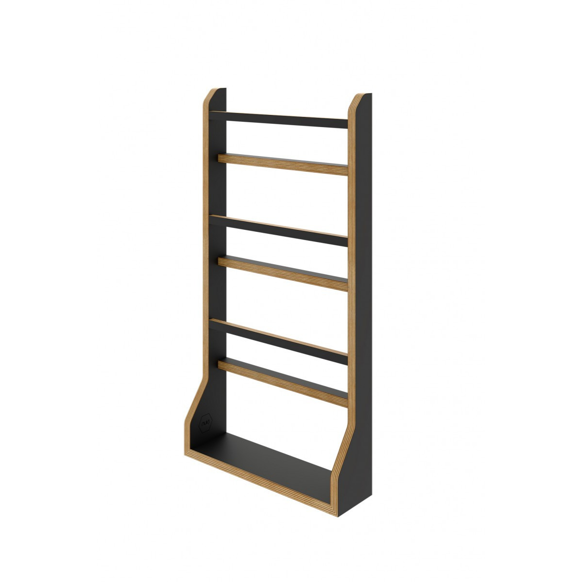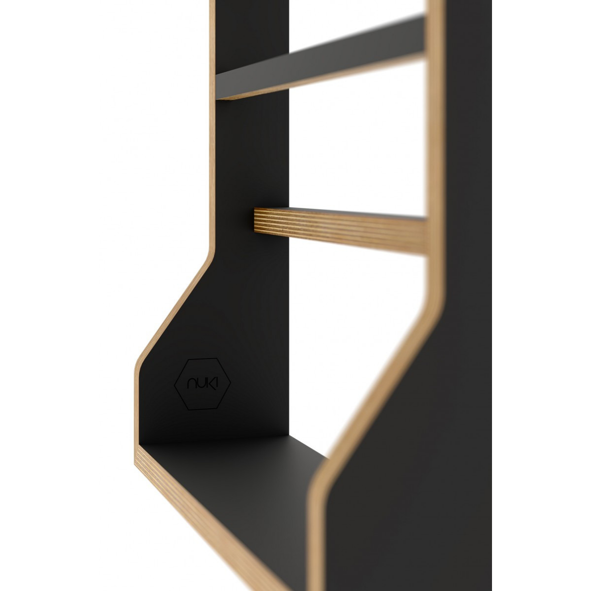 Półka Nuki w kolorze czarnym to połączenie naturalnej brzozowej sklejki oraz niezwykle gładkiego i odpornego laminatu.
