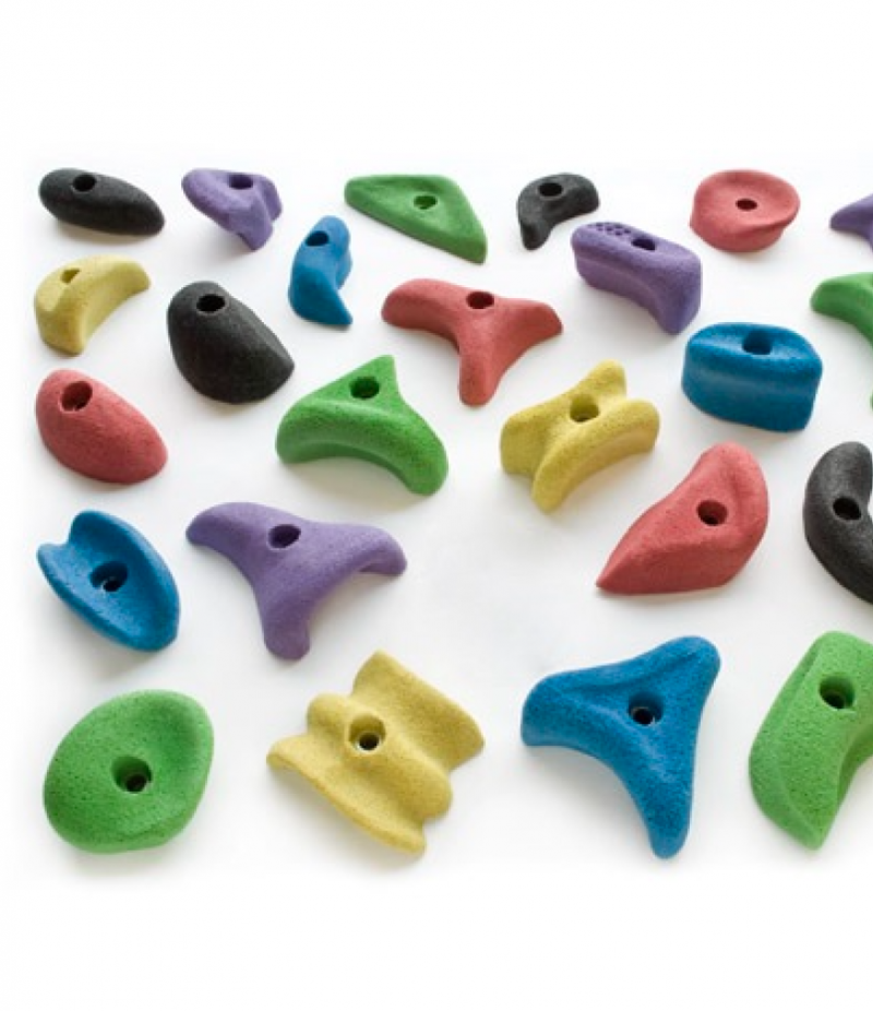 Chwyty wspinaczkowe wykonane są z wytrzymałej żywicy, zamontowane w otwory przygotowane w ściankach, zapewniają najwyższą stabilność oraz całkowite bezpieczeństwo w trakcie wspinania. Każdy chwyt zaopatrzony jest w śrubę umożliwiająca wkręcenie go bezpośrednio w ściankę.