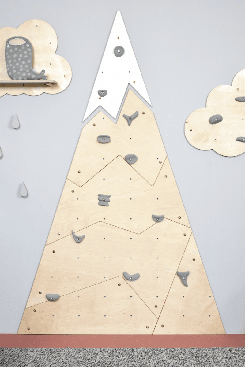Ścianka wspinaczkowa w kształcie góry wyczaruje przestrzeń, która pobudzi i ciało, i wyobraźnię. Lekkość formy sprawi, że GÓRY idealnie dopasują się do wszelkich wnętrz dziecięcych. Ścianka występuje w 2 rozmiarach, które łącząc ze sobą tworzą piękne pasmo górskie idealnie aranżujące przestrzeń ścienną.