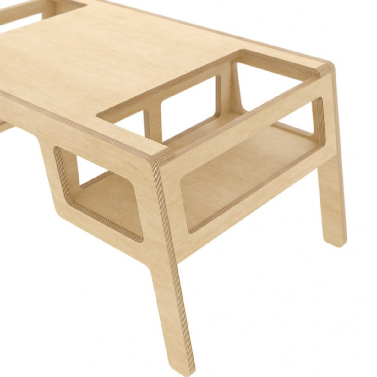 Double Flex to wielofunkcyjny stolik dla rodzeństwa wykonany z naturalnej brzozowej sklejki. Składa się z blatu oraz zabudowanych dwóch siedzisk. Zapewnia niemowlakom i starszym dzieciom bezpieczne jedzenie, rysowanie czy dowolną interakcję z rodzeństwem.