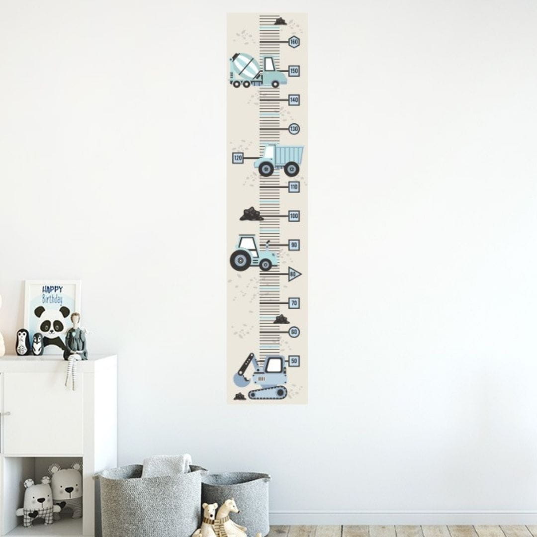 Miarki wzrostu z pojazdami budowlanymi można przykleić w dowolnym miejscu i odnotowywać na nich kolejne centymetry wzrostu malucha.