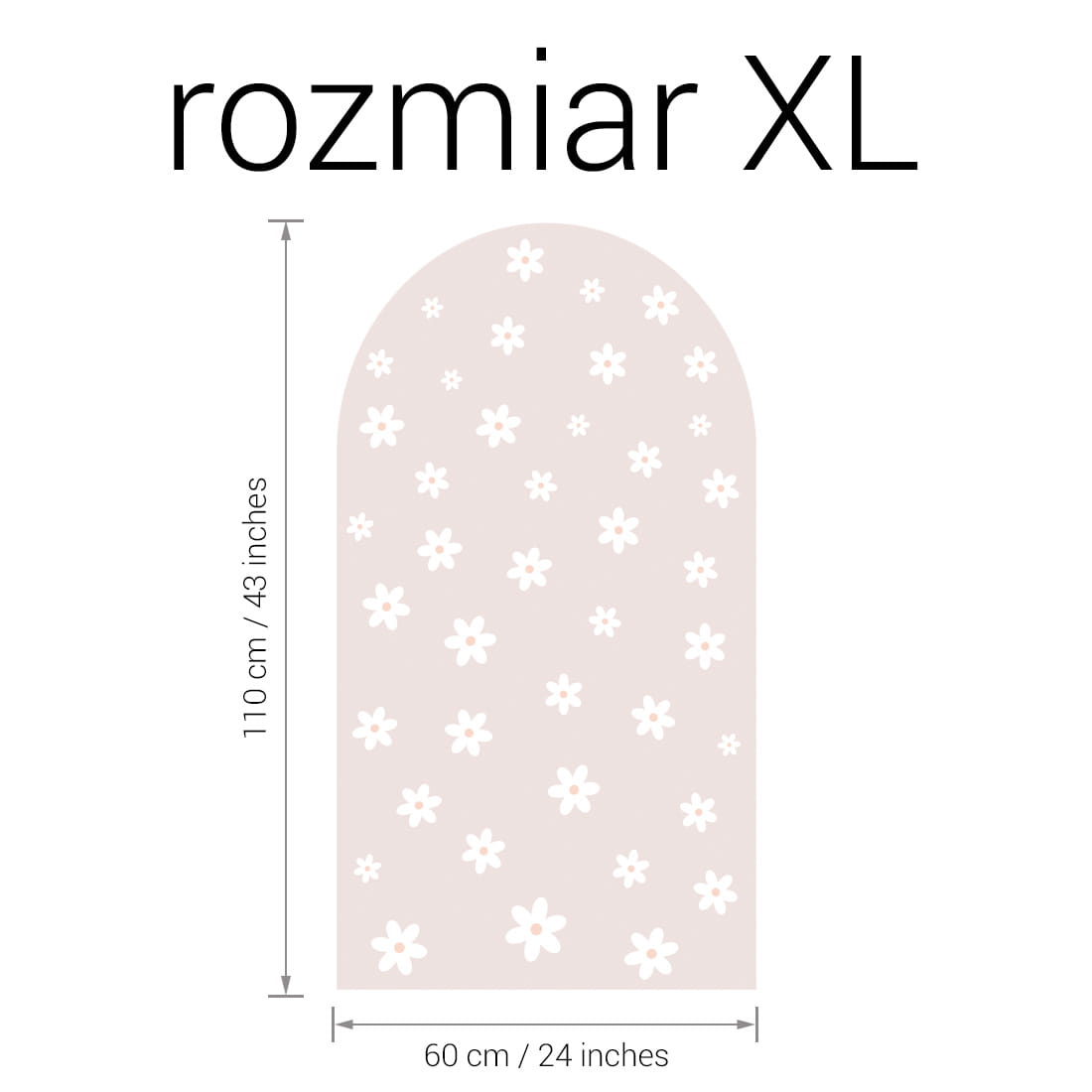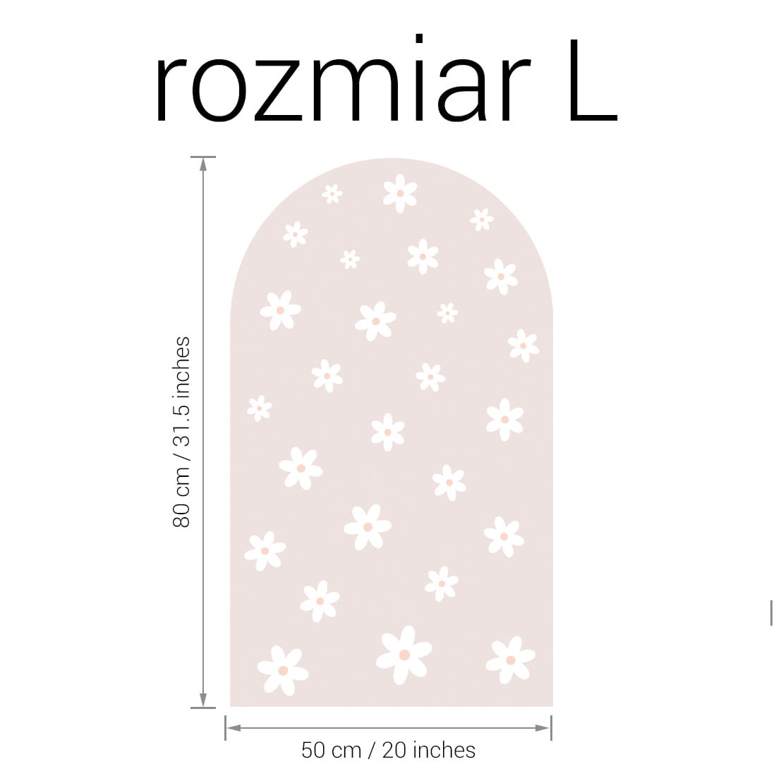 Naklejka ścienna w kształcie łuku Stokrotki to subtelna, a zarazem efektowna dekoracja, która wprowadza do wnętrza ciepło, delikatność i naturalną elegancję. Kolor brudnego różu tworzy stonowaną, przytulną bazę, a białe mini stokrotki dodają całości lekkości i dziewczęcego wdzięku.