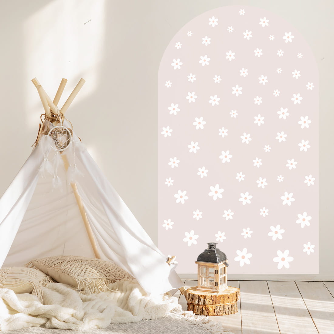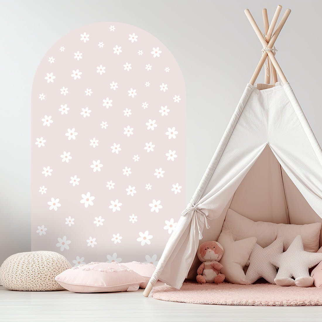 Naklejka na ścianę łuk Brudny Róż Stokrotki Mini – dekoracja pełna ciepła i uroku