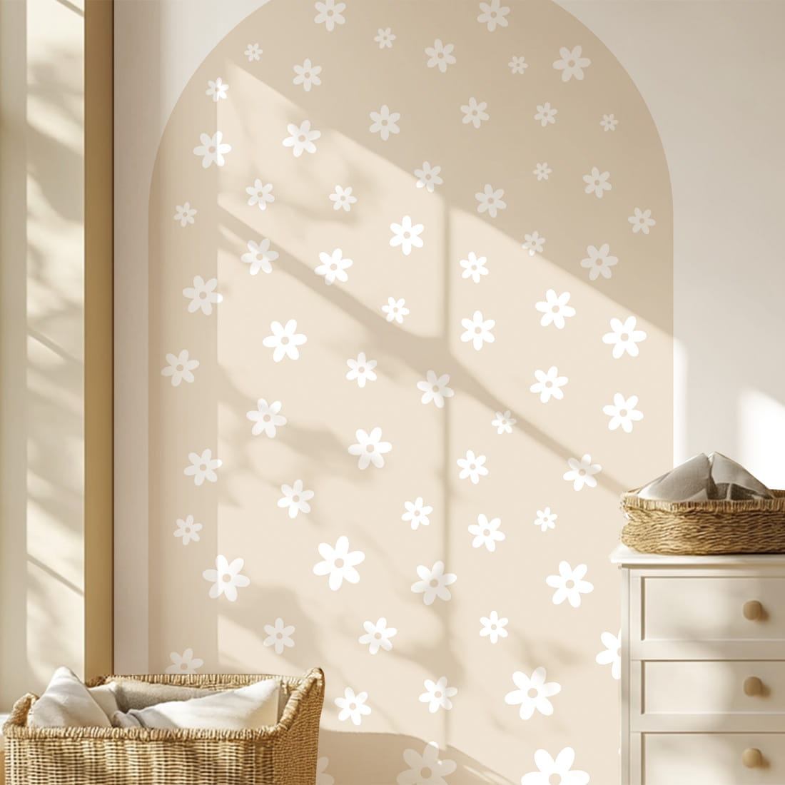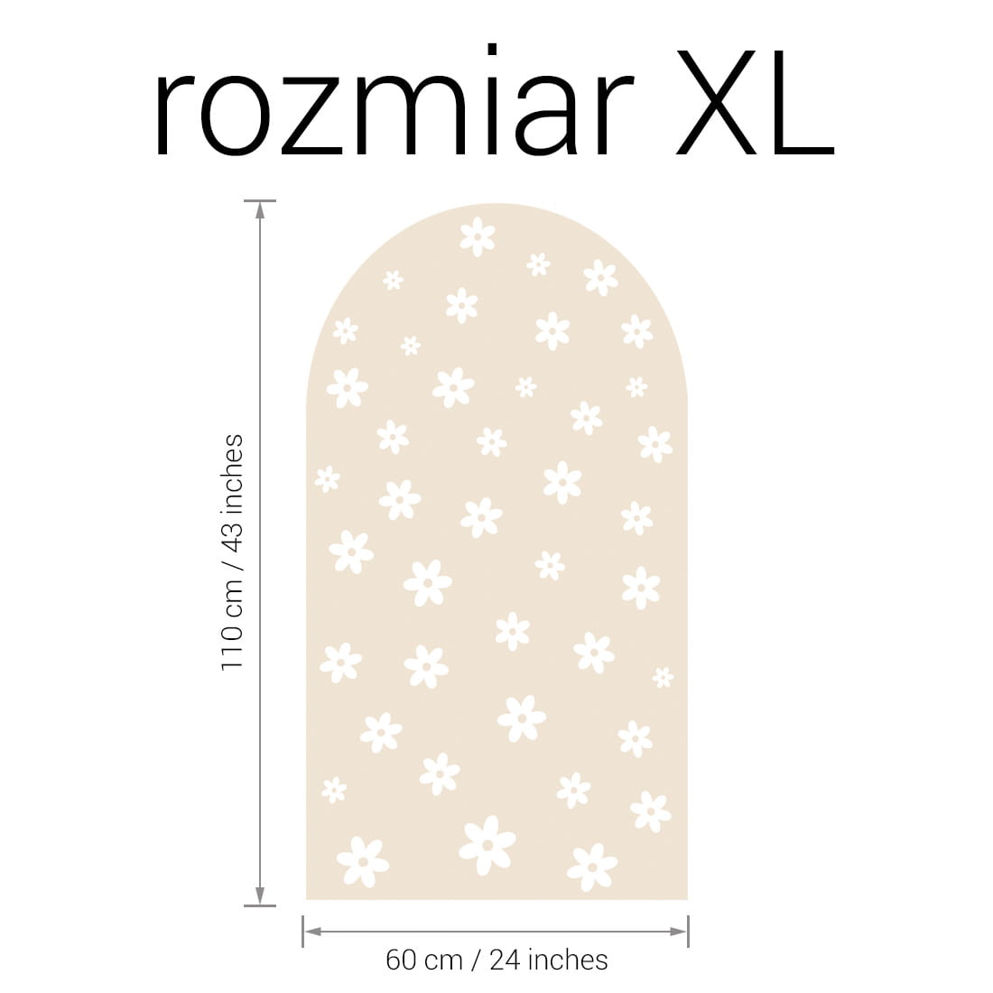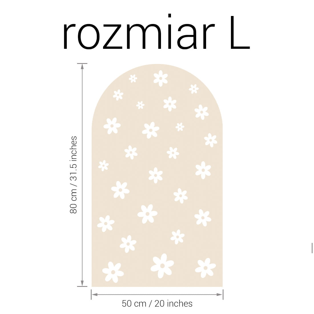 Naklejka ścienna w kształcie łuku Stokrotki mini to subtelna i ciepła dekoracja, stworzona z myślą o najmłodszych. Utrzymana w mlecznym odcieniu beżu i ozdobiona drobnym wzorem białych stokrotek, wprowadza do wnętrza atmosferę spokoju, łagodności i dziecięcej radości.