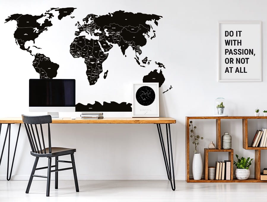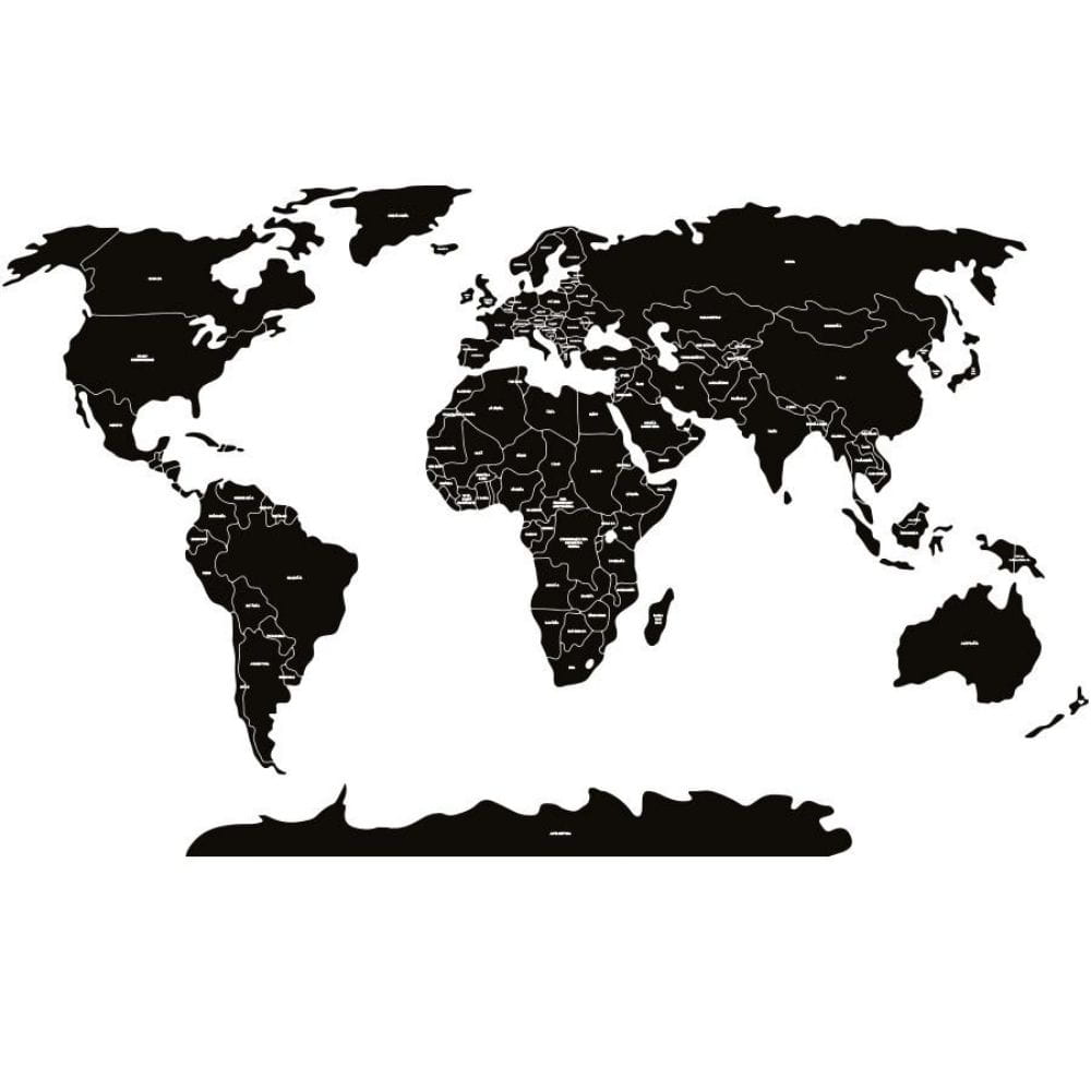 PASTELOWE LOVE - NAKLEJKA MAPA ŚWIATA POLITYCZNA CZARNA