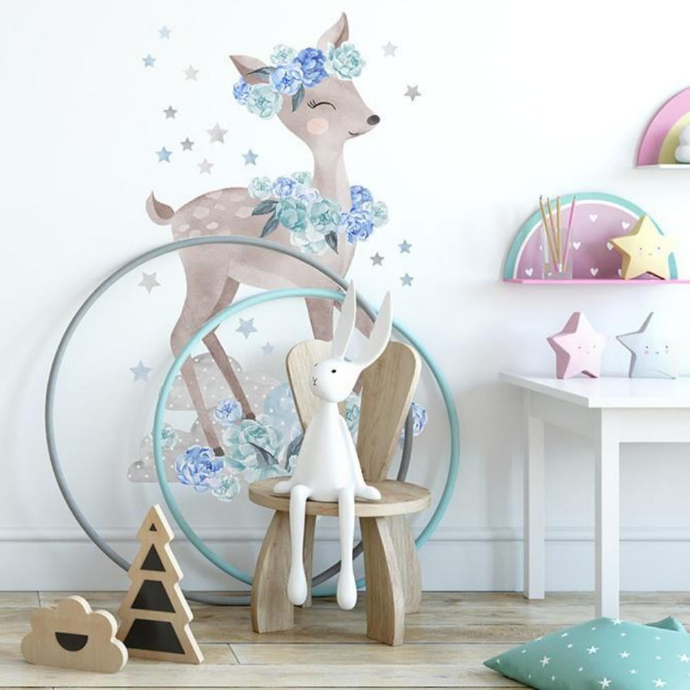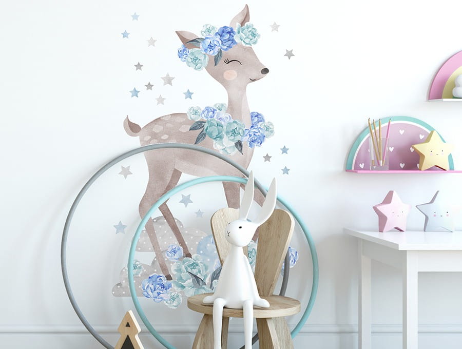 W skład naklejki do pokoju dziewczynki z sarenką wchodzi: