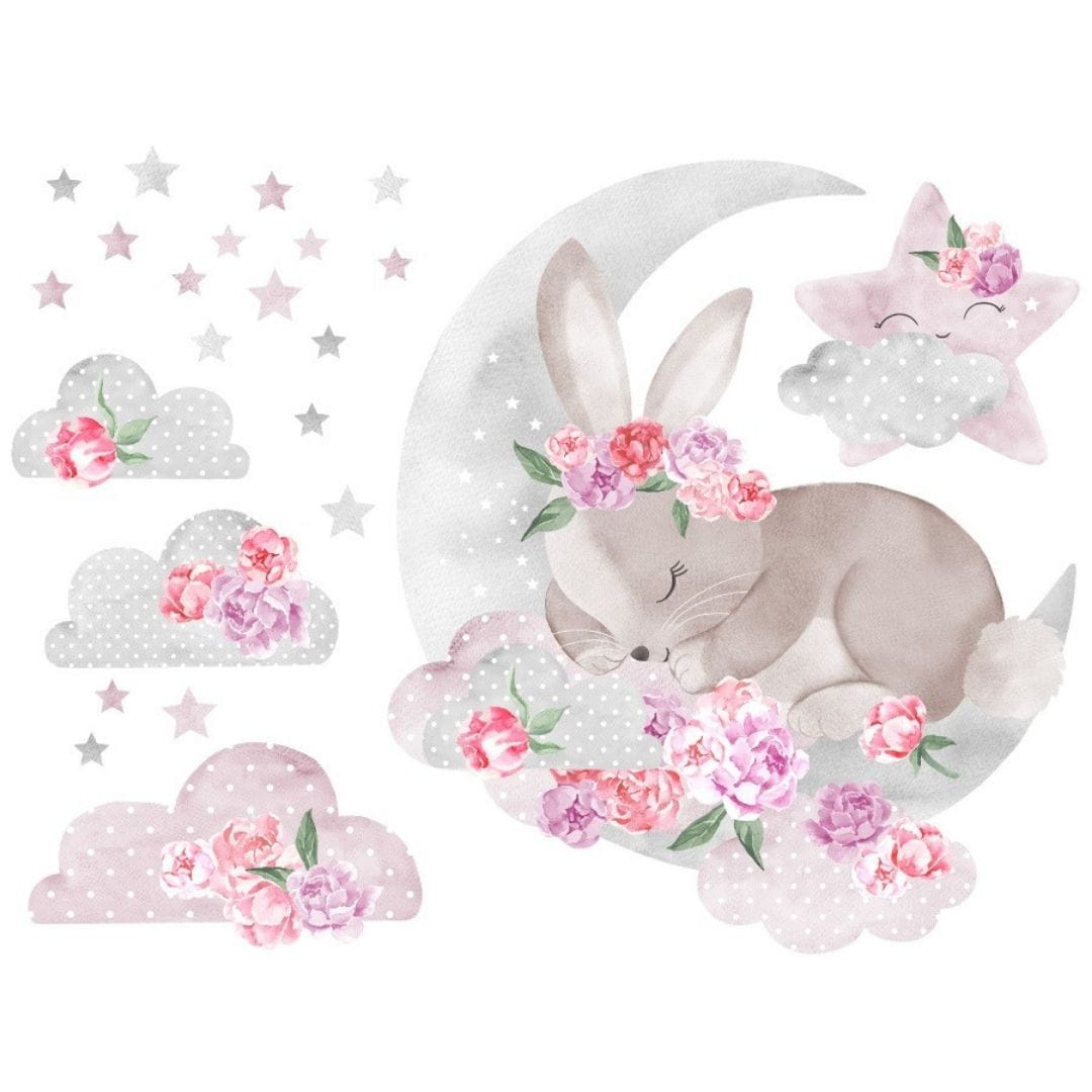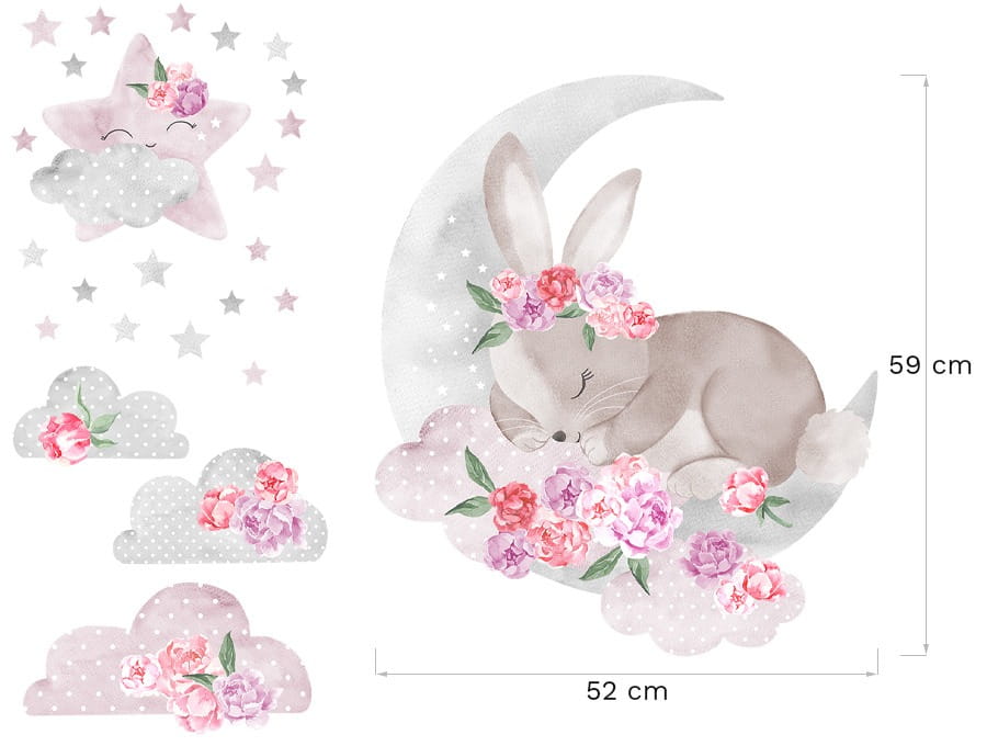 W skład naklejek do pokoju dziewczynki śpiący królik wchodzą: