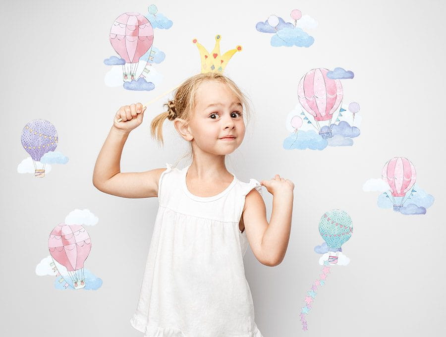 Stwórz baśniowe i magiczne wnętrze dla dziecka z podniebnymi balonami :) Dzieci nie tylko będą cudownie zasypiały w ich towarzystwie, ale również świetnie się bawiły, znajdując na ścianie kolorowe girlandy, balony i chmurki.