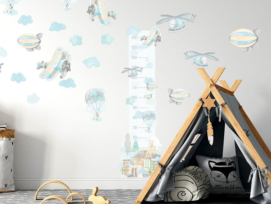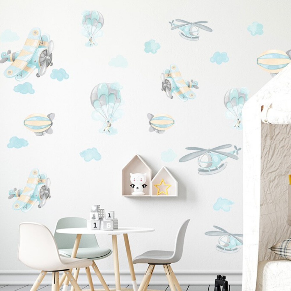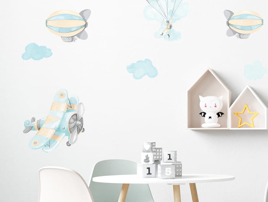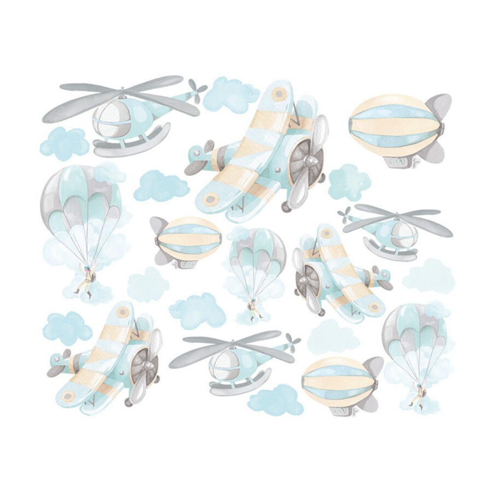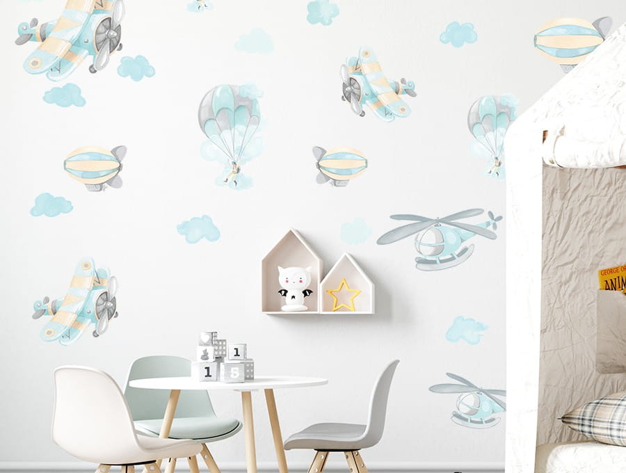 Naklejki do pokoju dziecka samoloty to zestaw naklejek, w którego skład wchodzą: