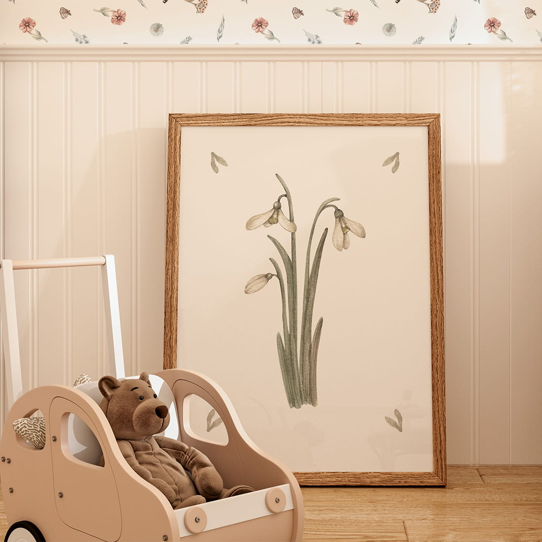 Plakat Przebiśniegi to doskonały sposób na wprowadzenie radości do dziecięcego pokoju. Idealnie pasuje do reszty plakatów z kolekcji akwarelowej, tworząc spójną i harmonijną aranżację wnętrza. Delikatne i urokliwe ilustracje w stylu boho dodadzą ciepła i przytulności każdej przestrzeni.