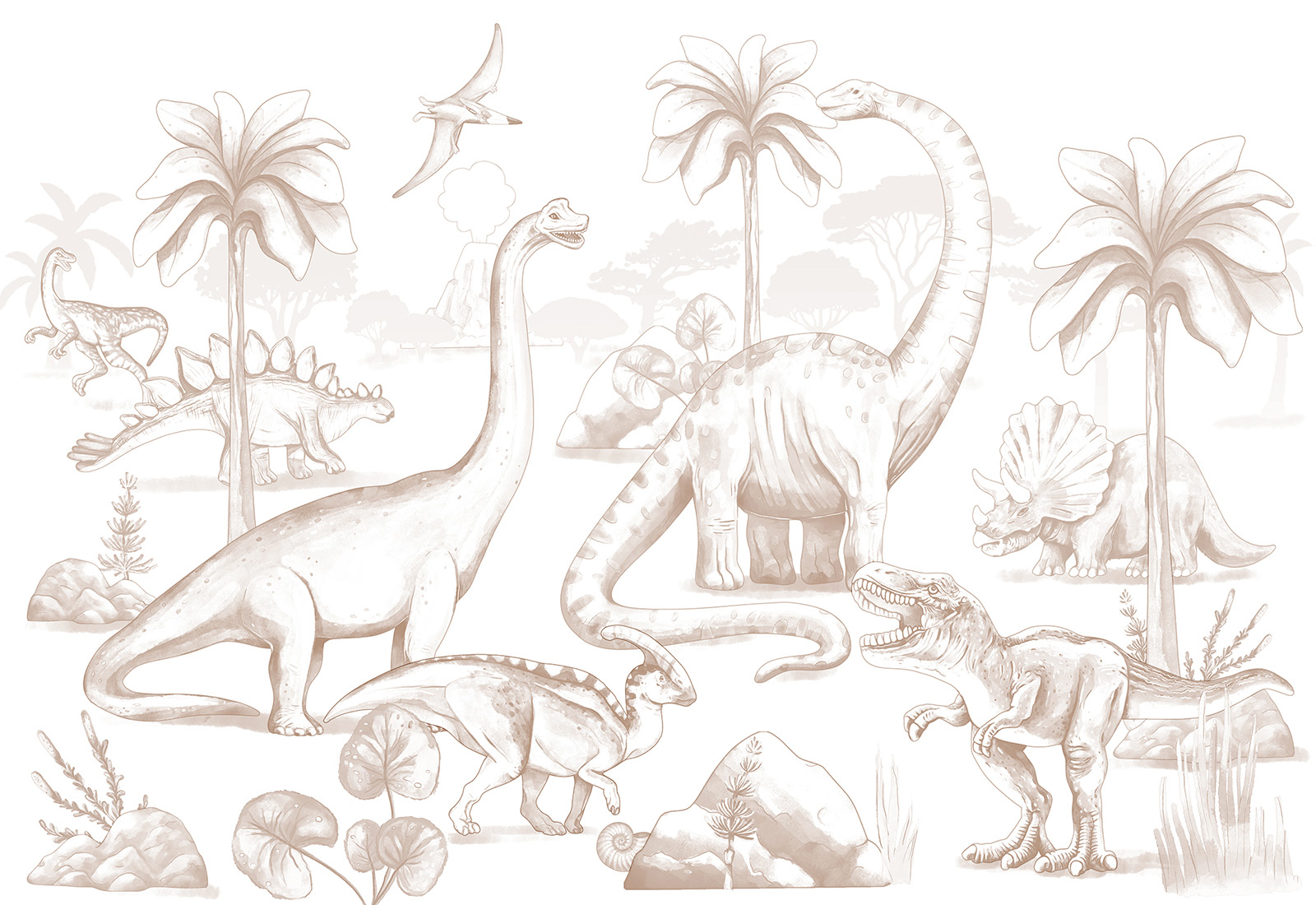PASTELOWE LOVE - TAPETA DINOZAURY SEPIA