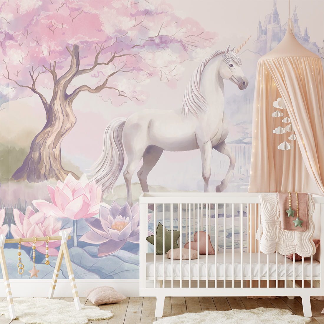 Tapeta dla dzieci Jednorożec – baśniowa magia w pokoju dziewczynki