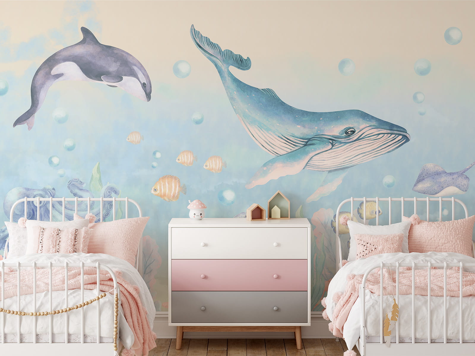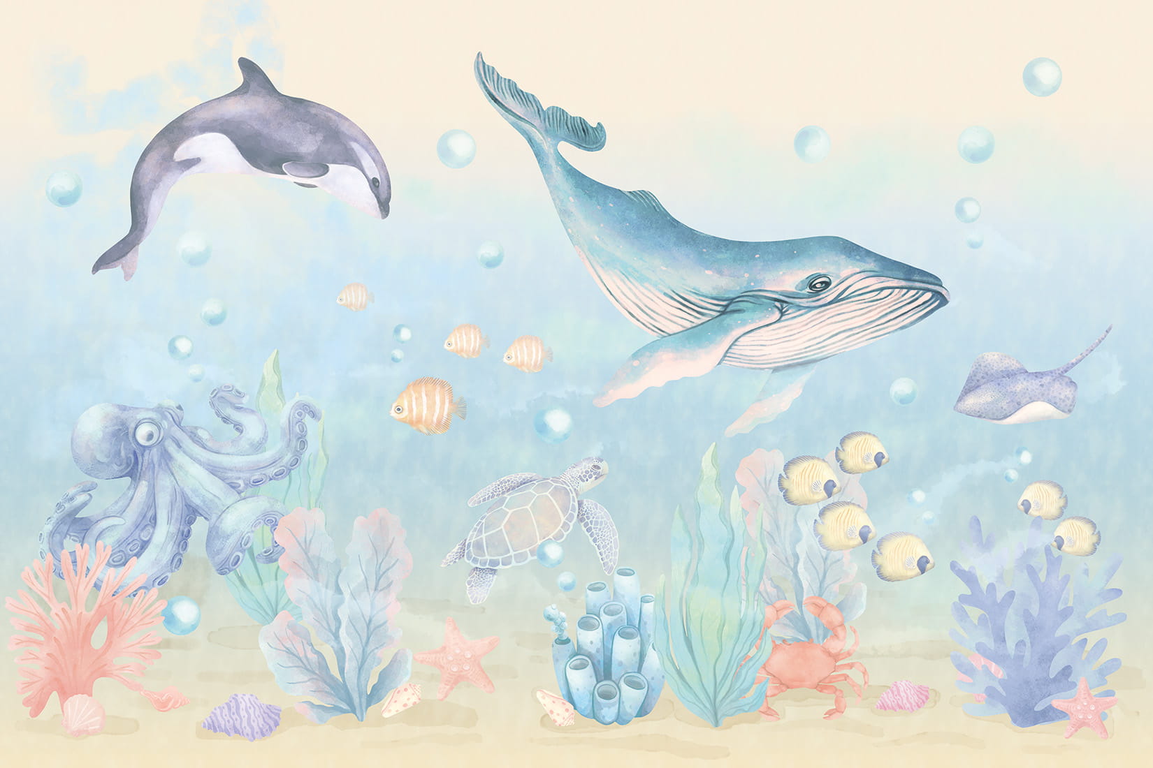 Na tapecie znajdziesz rafy koralowe, kolorowe ryby, delfina, wieloryba i wiele innych podwodnych istot. Dzięki niesamowicie realistycznym detalom, Twoje dziecko poczuje się jak prawdziwy odkrywca morskiego świata.