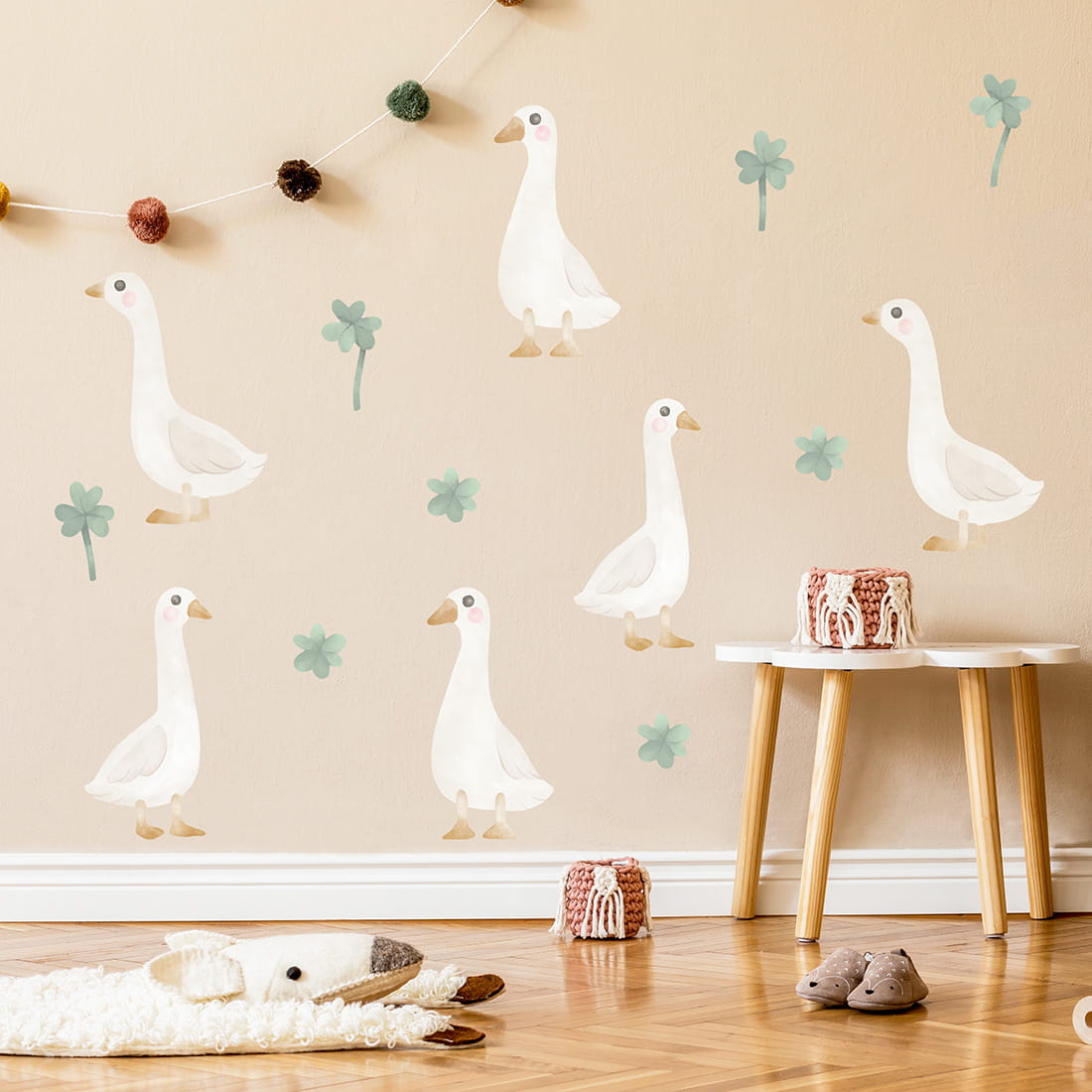 Naklejka na ścianę gąski to wyjątkowa dekoracja, która doskonale wkomponuje się w każde wnętrze dla dzieci. Stonowane, neutralne kolory i niezwykłe detale sprawiają, że te naklejki pasują do wnętrz inspirowanych stylem boho.