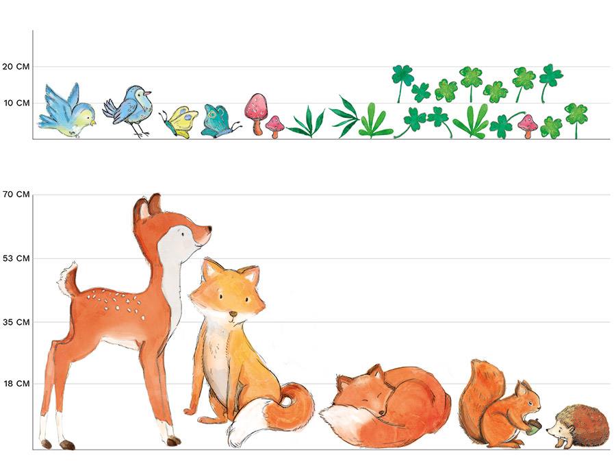 Zestaw naklejek na ścianę leśni przyjaciele to ciekawa alternatywa dla tradycyjnych tapet. Naklejki w cudowny sposób odmienią zwykły pokój w królestwo pełne zabawy i marzeń. Kolekcja ta powstała z myślą o wszystkich fanach leśnych zwierzątek. Dzięki wyjątkowej staranności wykonania, każde dziecko będzie miało możliwość poczuć się jak we własnym lesie, wśród swoich magicznych przyjaciół.
