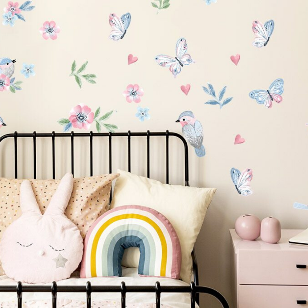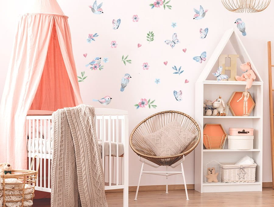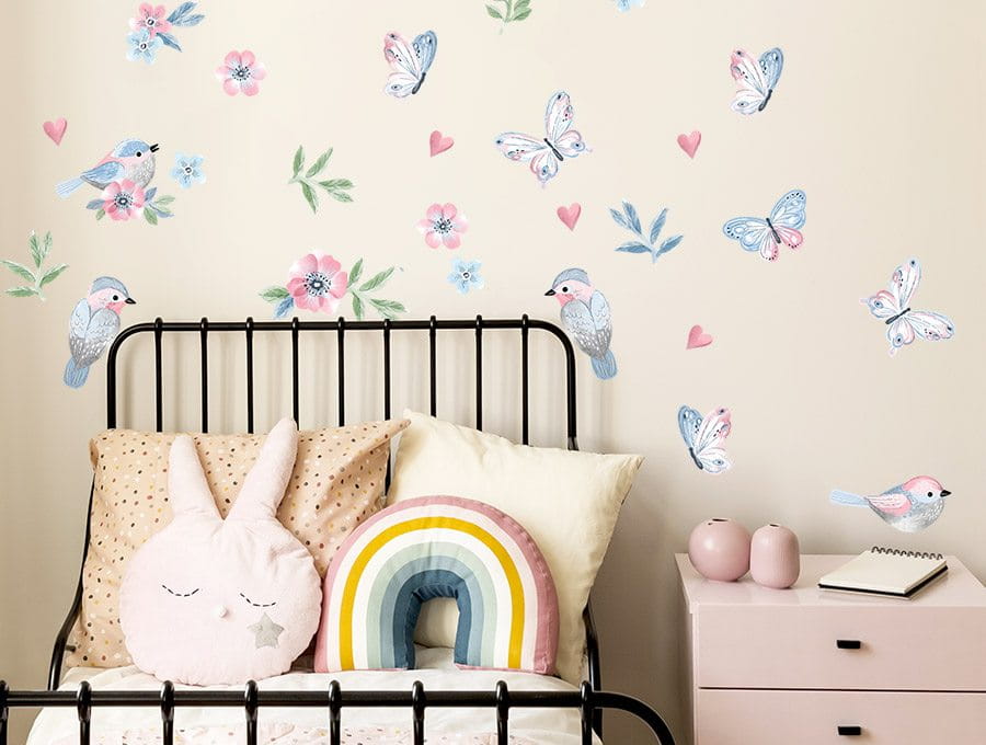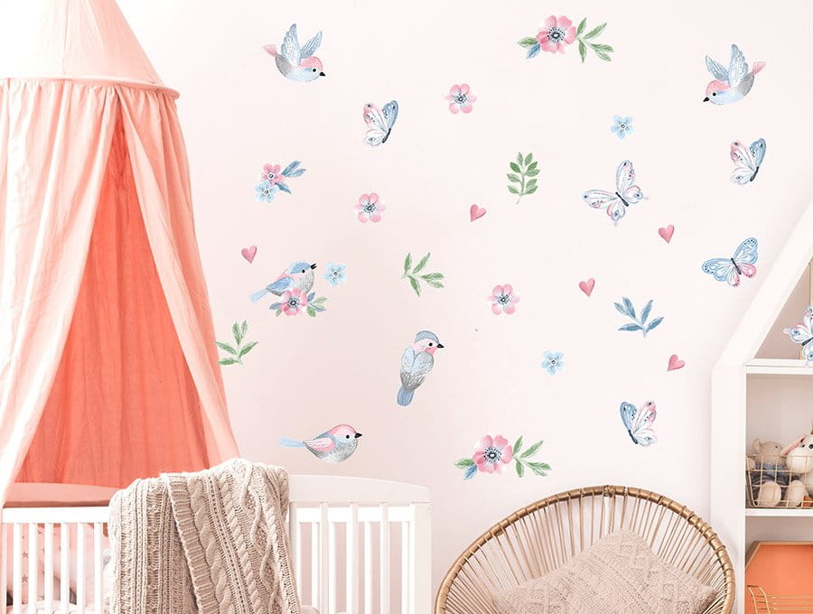 Naklejki ptaszki to rewelacyjna alternatywa dla tradycyjnych tapet. Dzięki nim można w szybki sposób odmienić dziecięce wnętrze, nadając mu niepowtarzalnego klimatu leśnej łąki pełnej ptaszków, motylków i kwiatów.