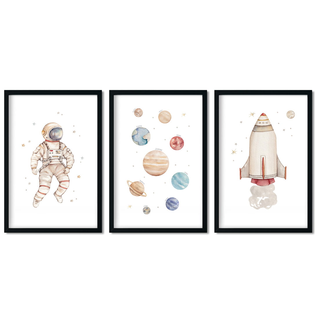 Rozbudź dziecięcą wyobraźnię i przenieś swojego malucha w fascynujący świat kosmosu! Zestaw trzech plakatów Astronauta, Rakieta i Planety to nie tylko dekoracja, ale także inspiracja do odkrywania wszechświata i marzeń o międzygwiezdnych podróżach.