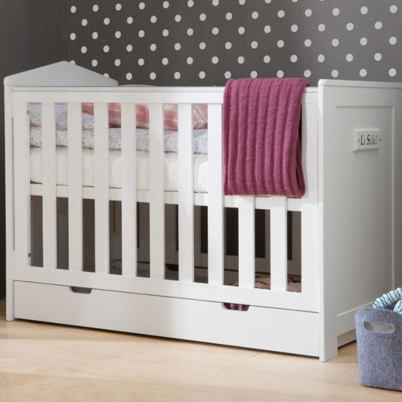 Jeśli potrzebujesz więcej miejsca do przechowywania, wybierz opcję łóżeczka niemowlęcego z szufladą.