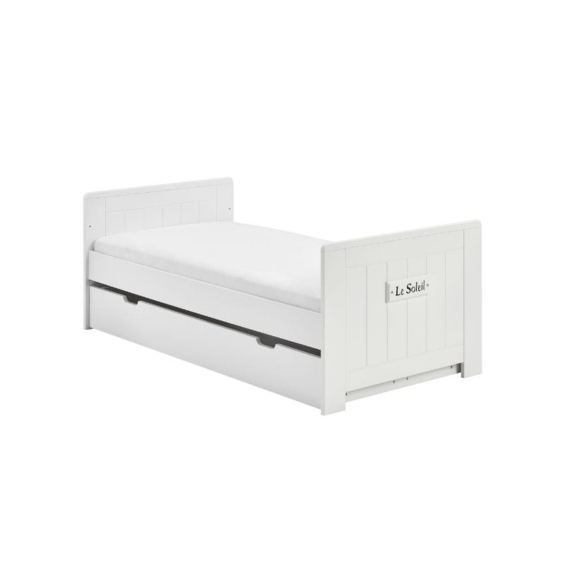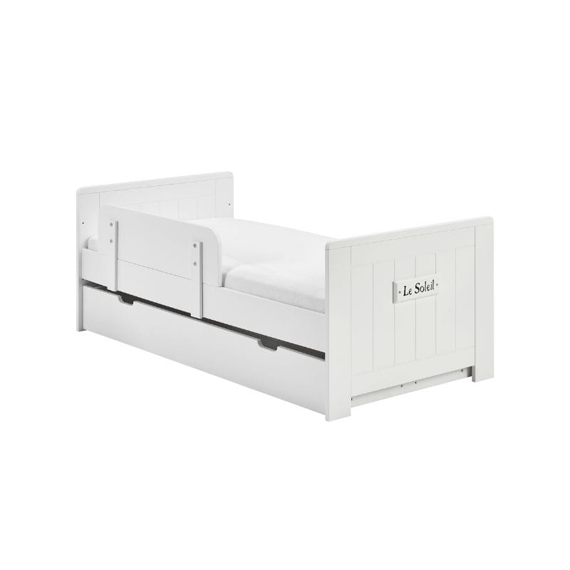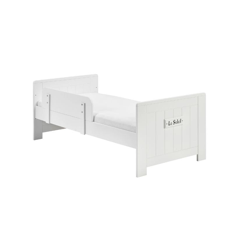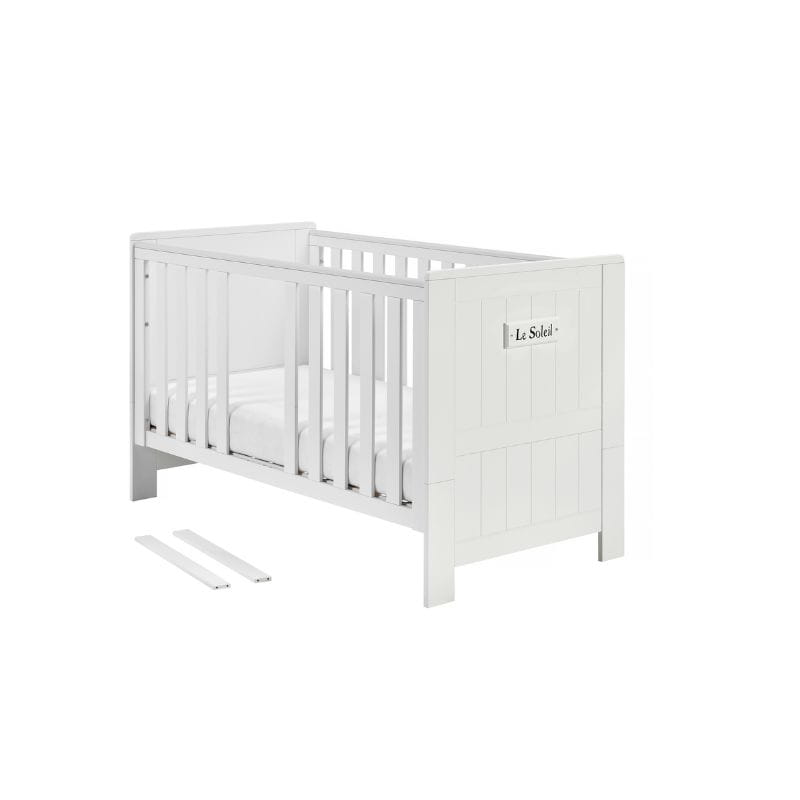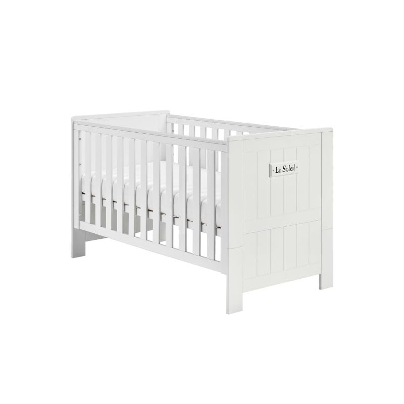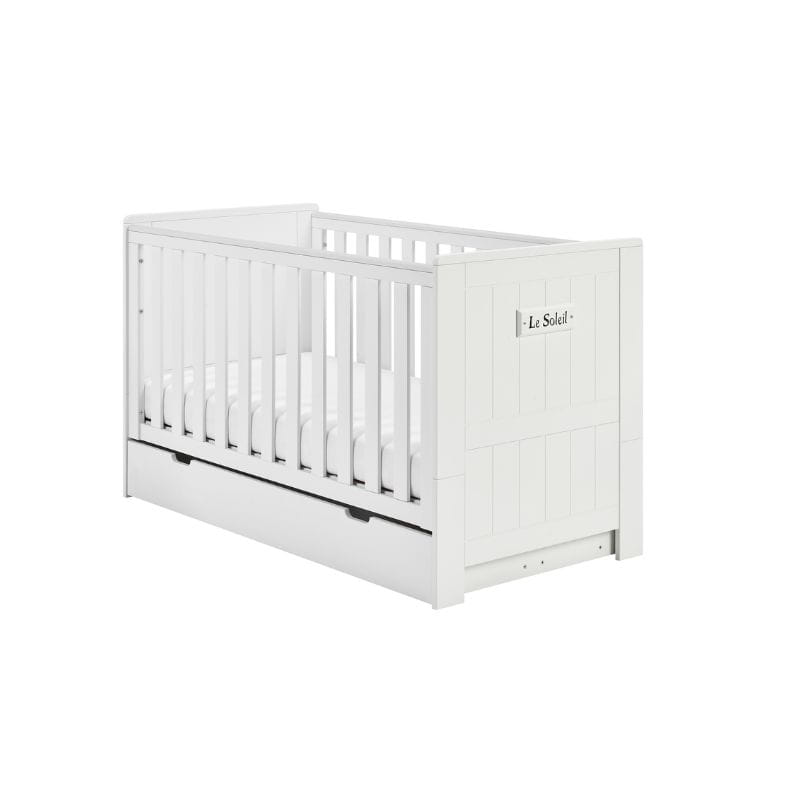Stylowy dekor z napisem "Le Soleil", co w języku francuskim oznacza "Słońce", dodaje łóżeczku uroku i sprawia, że staje się ono wyjątkowym elementem wystroju pokoju dziecięcego.
