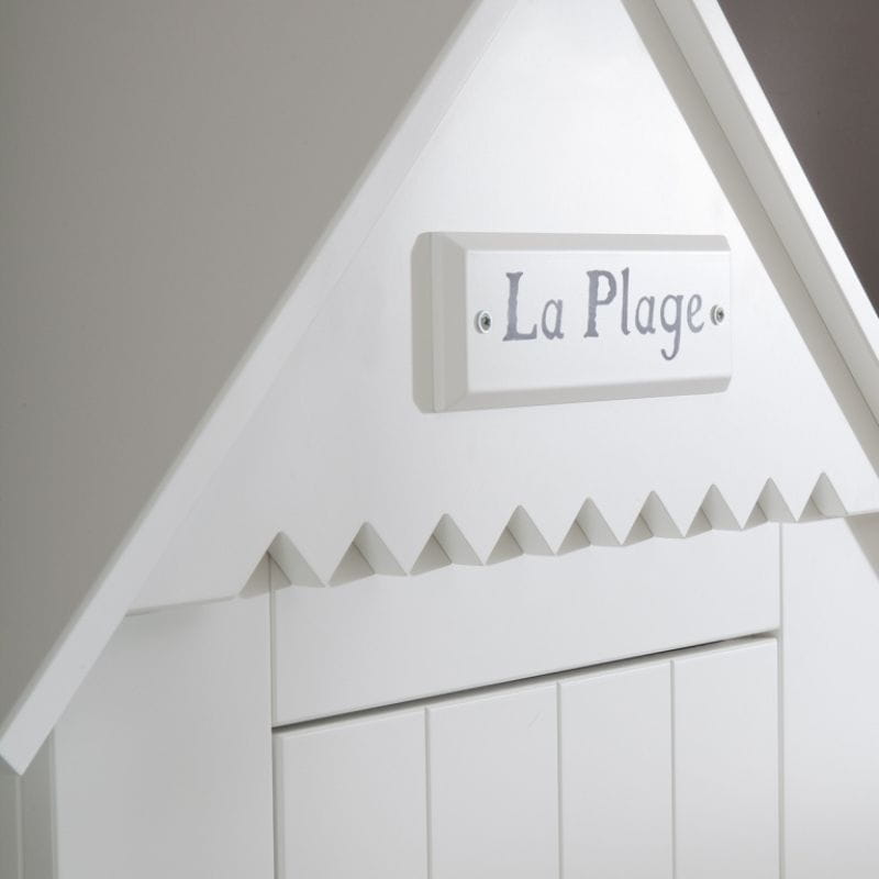 Drzwi ozdobione są subtelnym dekorem "La Plage" (fr. plaża), który dodaje szafie wyjątkowego uroku i wprowadza przytulną, wakacyjną atmosferę do wnętrza.