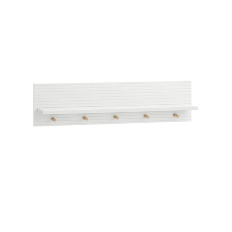 Półka wisząca z kolekcji Miloo to prosty i klasyczny dodatek do każdego wnętrza. Z łatwością pomieści podręczne kosmetyki czy akcesoria potrzebne przy pielęgnacji maluszka. Na drewnianych wieszakach można zawiesić ubranka czy ręczniki. Idealnie sprawdzi się również w roli mini biblioteczki. To świetne uzupełnienie kolekcji mebli dla dzieci Miloo polskiej marki Pinio.