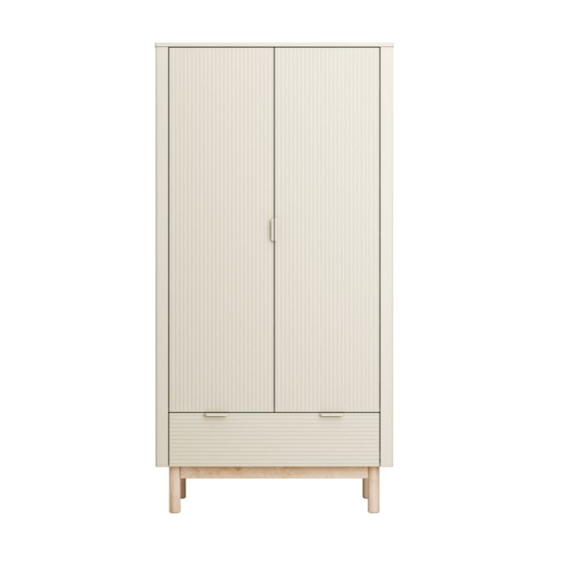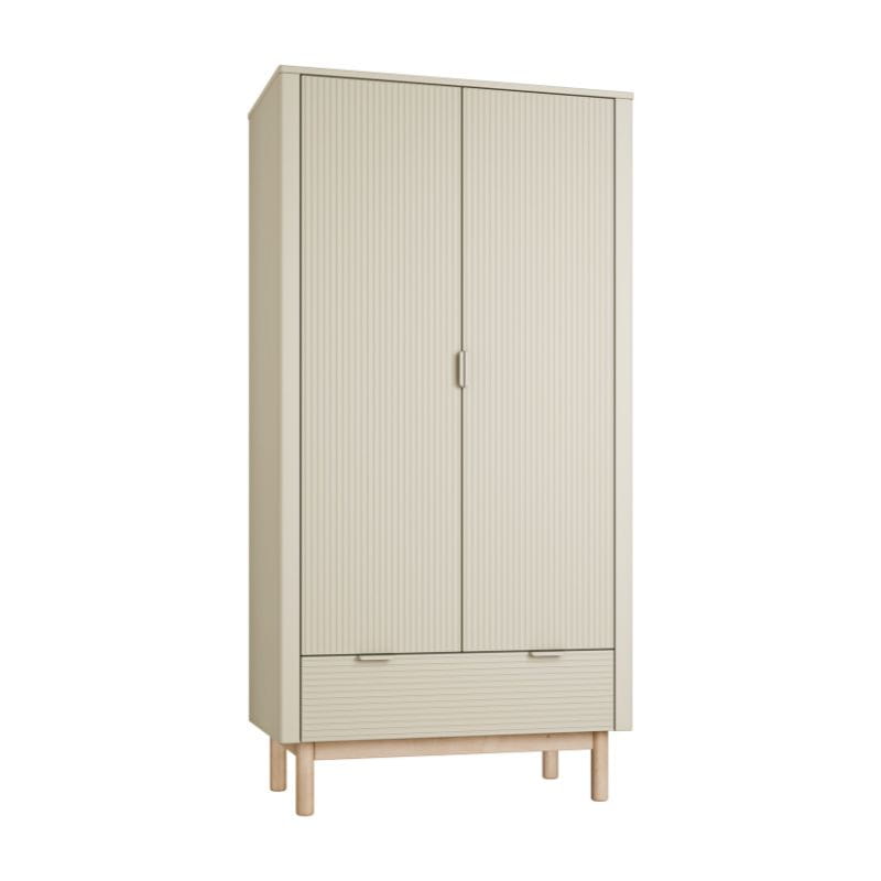 Stylowa szafa Miloo polskiej marki Pinio to idealne połączenie elegancji, funkcjonalności i bezpieczeństwa. Ryflowane fronty dodają jej charakteru i elegancji, czyniąc ją wyjątkowym elementem dekoracyjnym w każdym wnętrzu. Zaokrąglone narożniki zapewniają bezpieczeństwo, co jest szczególnie ważne w domach z małymi dziećmi. Metalowe uchwyty oraz drewniane bukowe nóżki nadają szafie lekkości i finezji, wprowadzając do wnętrza nutę nowoczesnej elegancji.
