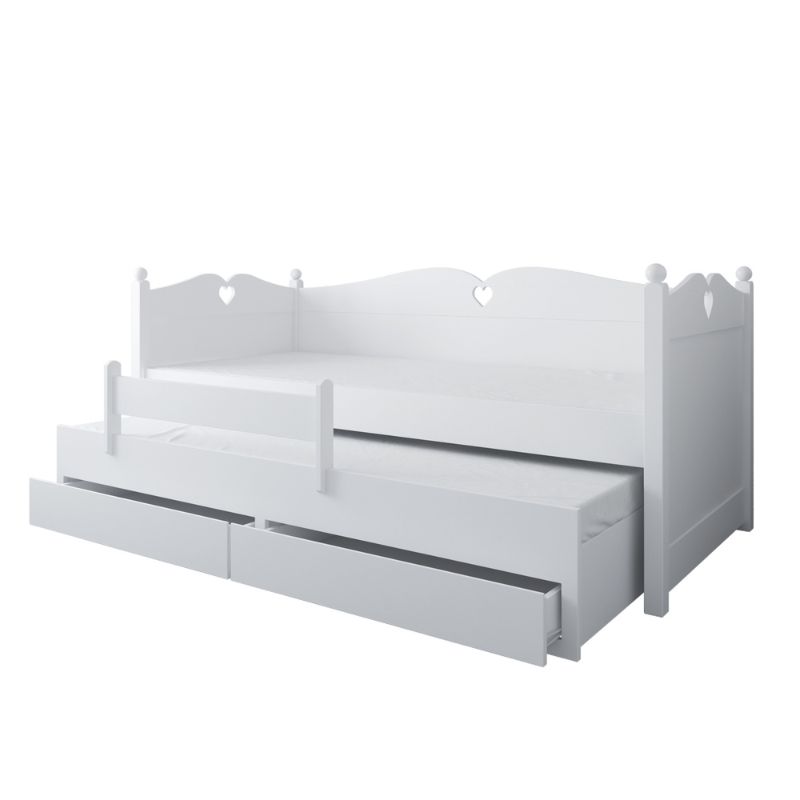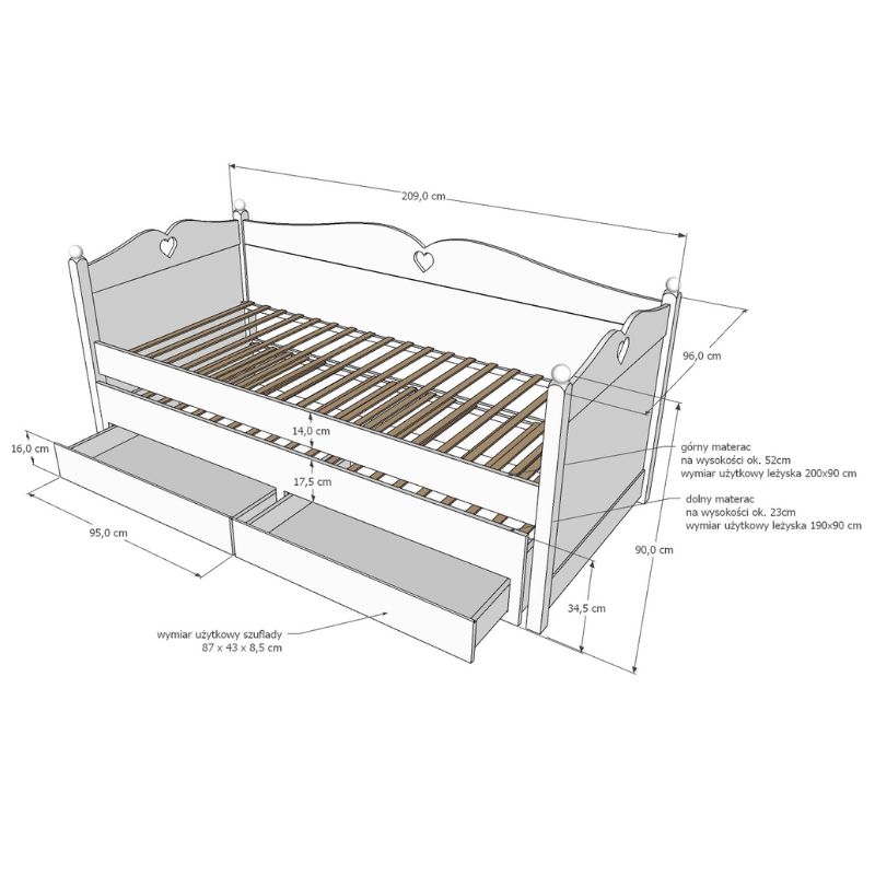 PODWÓJNE ŁÓŻKO SOFA BELLA Z SERDUSZKAMI I SZUFLADAMI