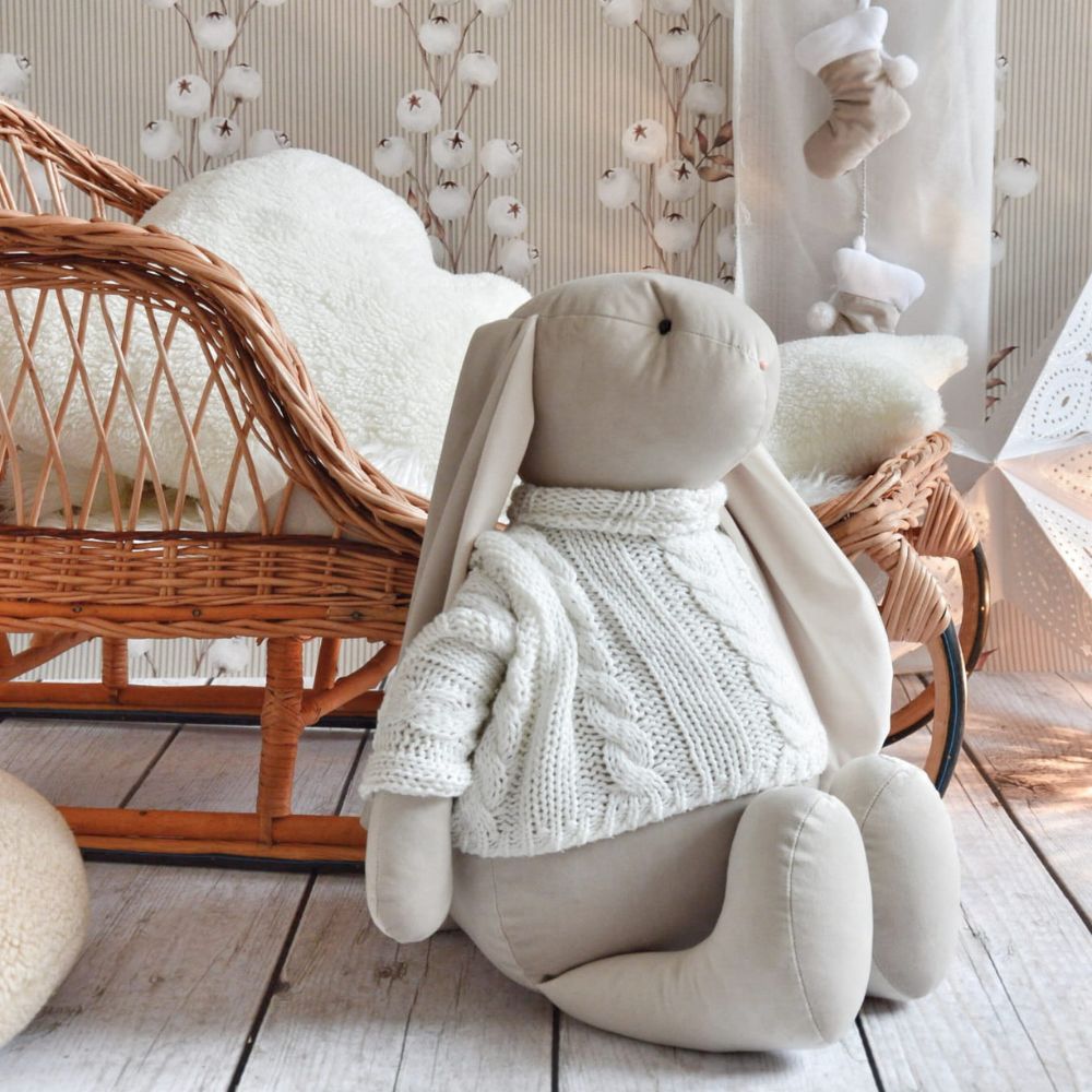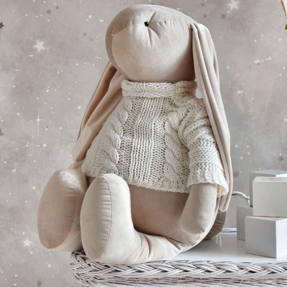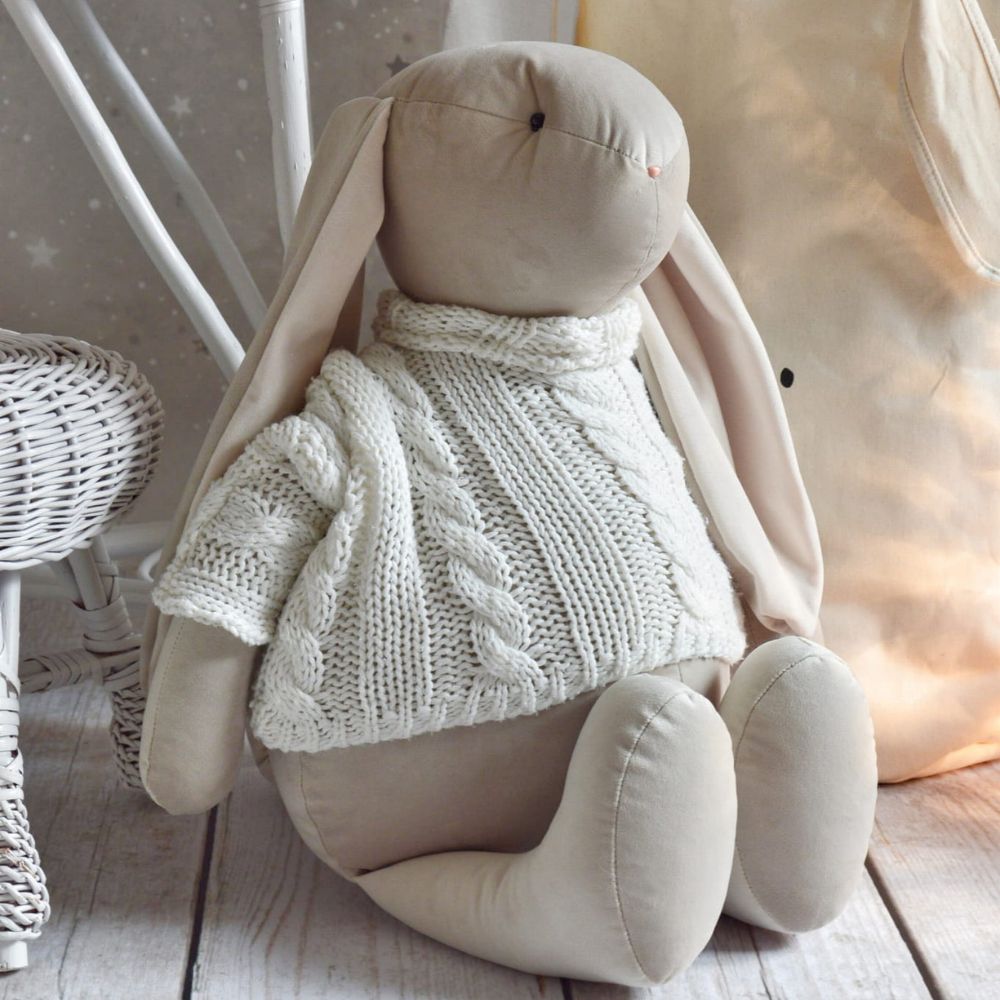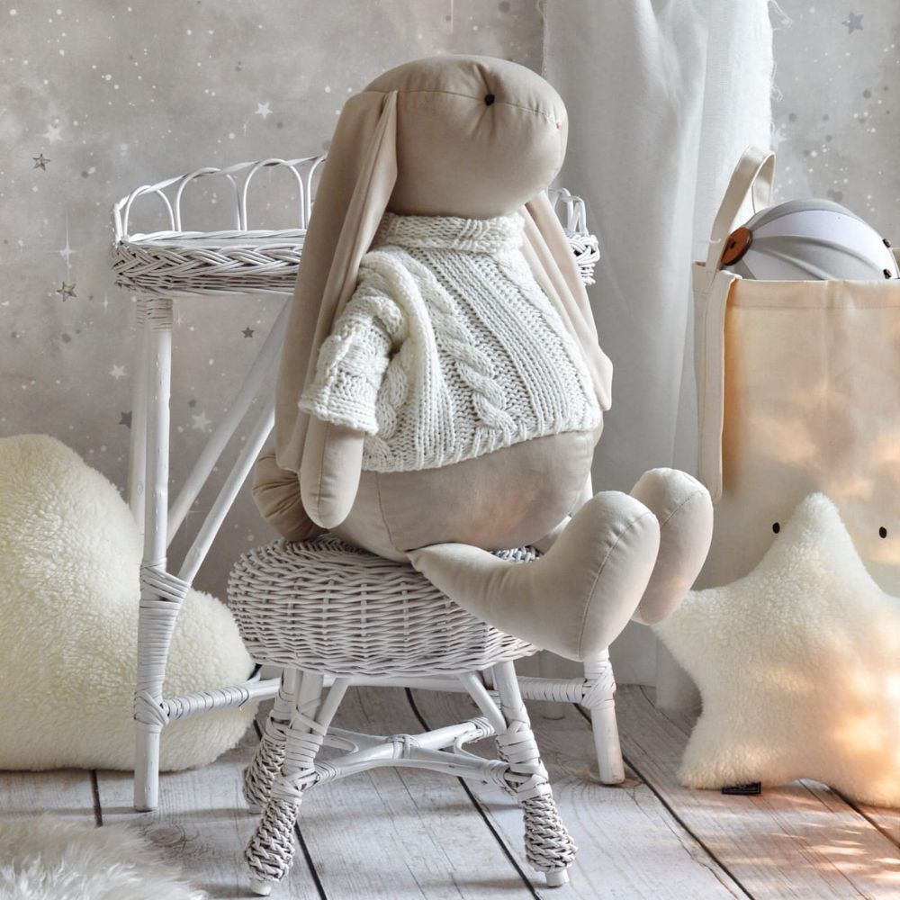 Stefan ma zdejmowany sweterek, który można łatwo wyprać lub wymienić na inne ubranko – dzięki temu zabawka może zmieniać swój styl razem z dzieckiem. Jego duży rozmiar sprawia, że świetnie sprawdzi się nie tylko jako przytulanka, ale również jako element dekoracyjny dziecięcego pokoju.