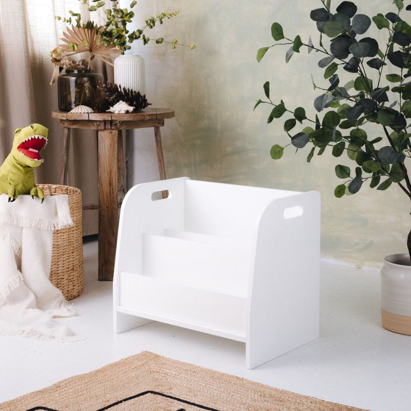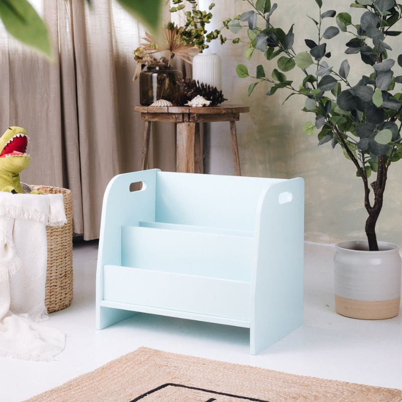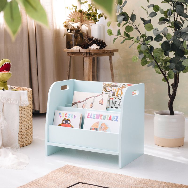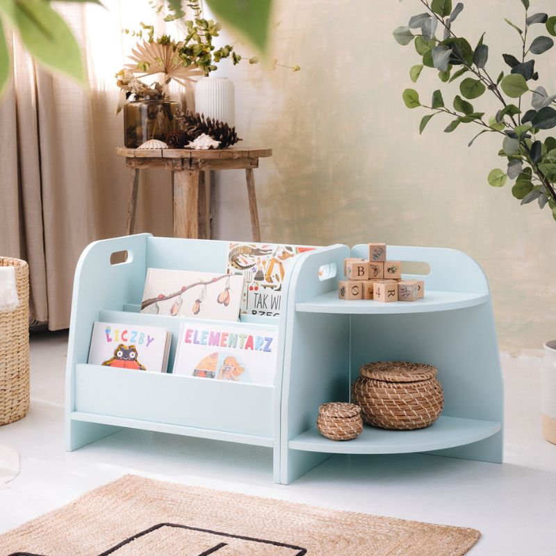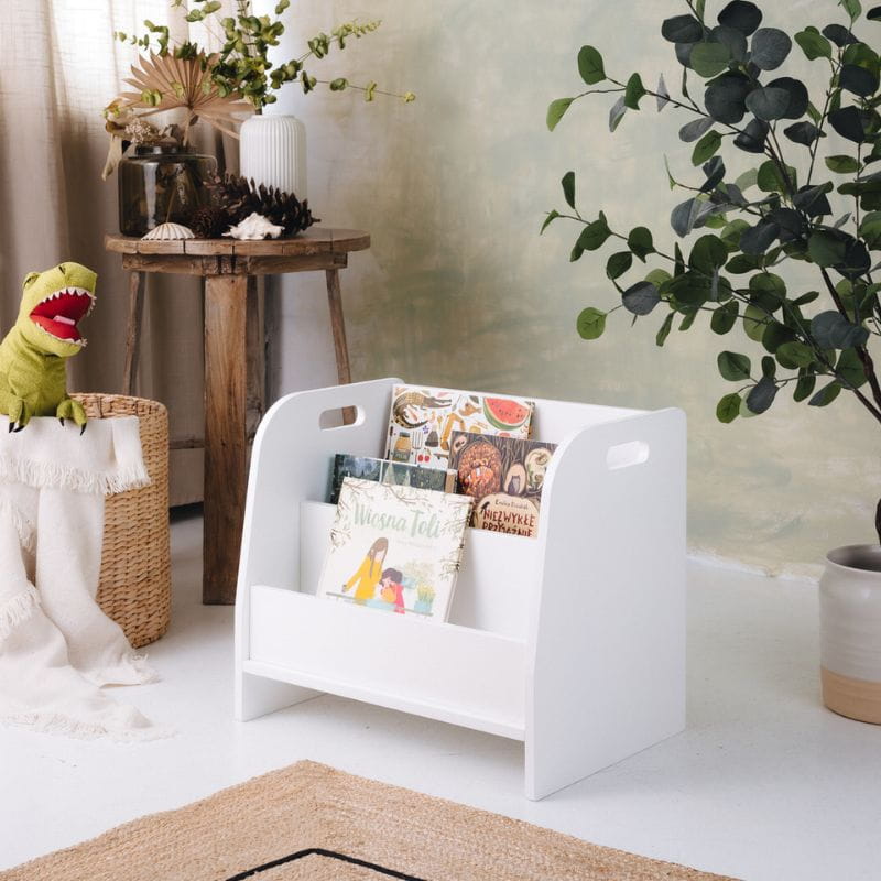 Pokój dla dziecka to przestrzeń wspierająca jego rozwój. Maluch powinien mieć niczym nieograniczony dostęp do wszystkich swoich zabawek i książek, co ułatwia mu samodzielne poznawanie świata. Półka na książki dla dziecka spełnia te warunki: nie zajmuje dużo miejsca, ma zaledwie 44 cm wysokości i ustawiona jest bezpośrednio na podłodze. Zapewnia więc łatwy dostęp do półek z książkami.