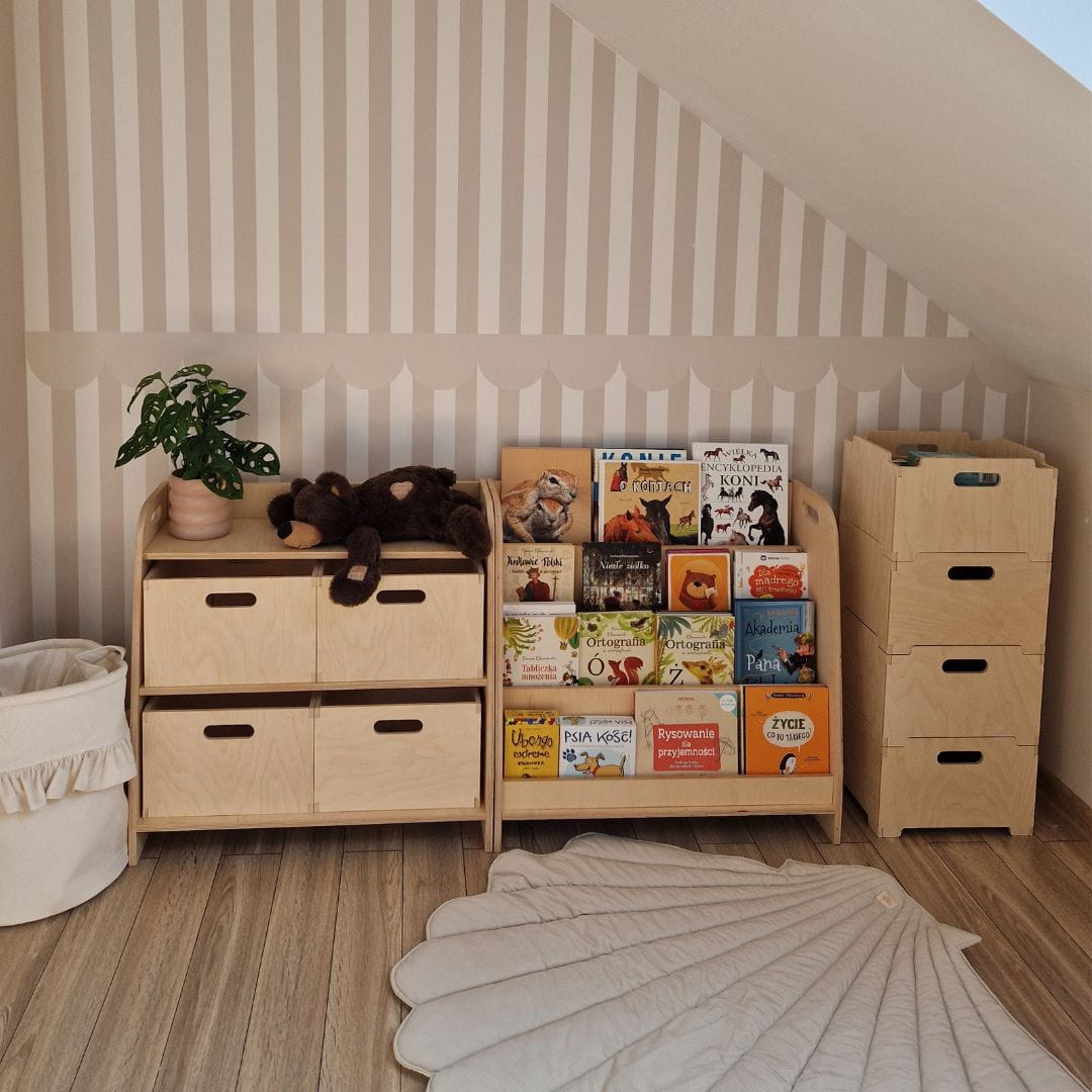 Modułowa skrzynka na zabawki łączy w sobie funkcjonalność, estetykę i oszczędność miejsca. Dzięki niej, przestrzeń w pokoju Twojego dziecka stanie się bardziej zorganizowana, a zabawki zawsze będą miały swoje miejsce, co z kolei przyczyni się do utrzymania porządku i harmonii w domowej przestrzeni.
