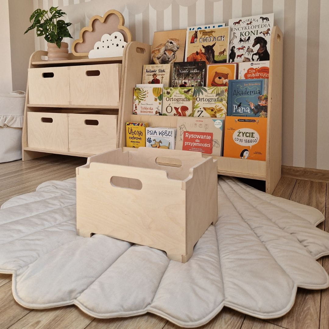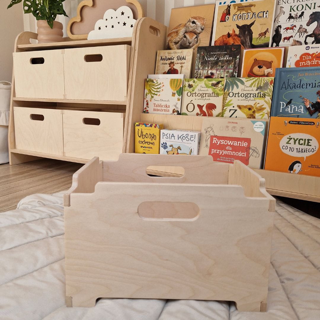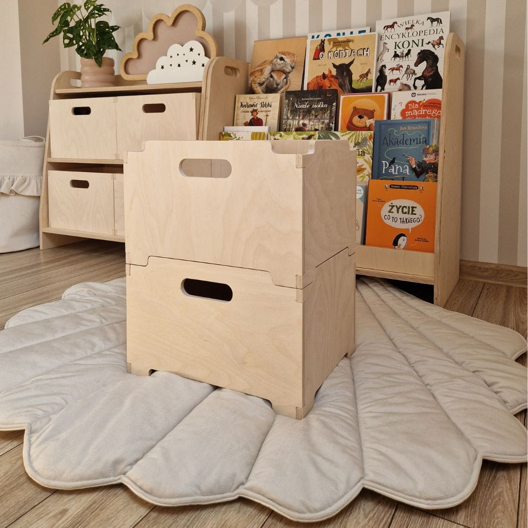 Skrzynki wykonane z wysokiej jakości sklejki są nie tylko trwałe, ale również estetyczne, co czyni je idealnym elementem dekoracyjnym w dziecięcej przestrzeni. Solidne i stabilne, skrzynki te mogą pomieścić różnorodne przedmioty - od zabawek i klocków, po książki, ubrania czy artykuły plastyczne.