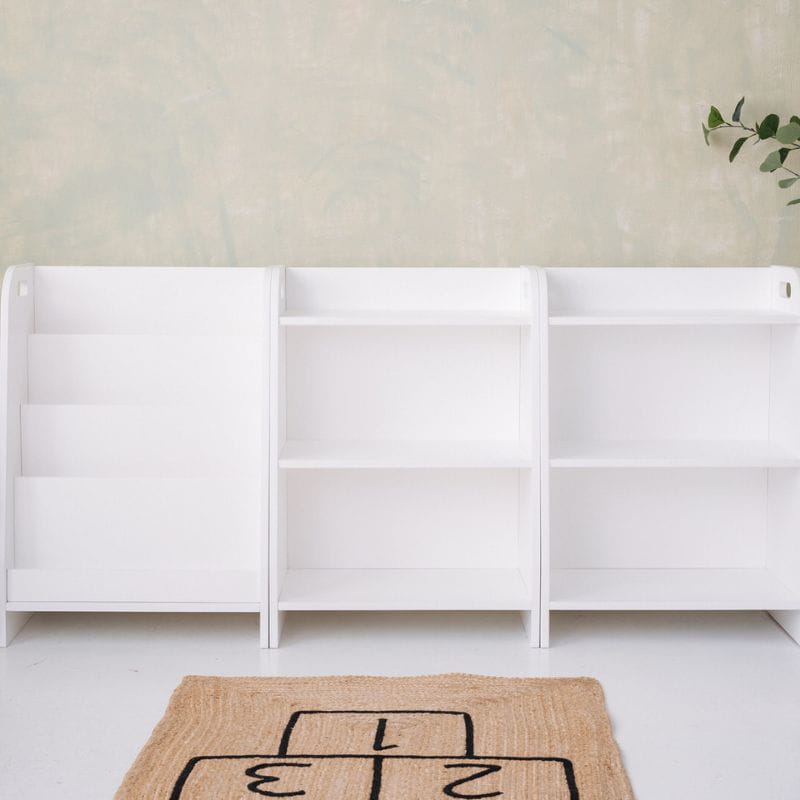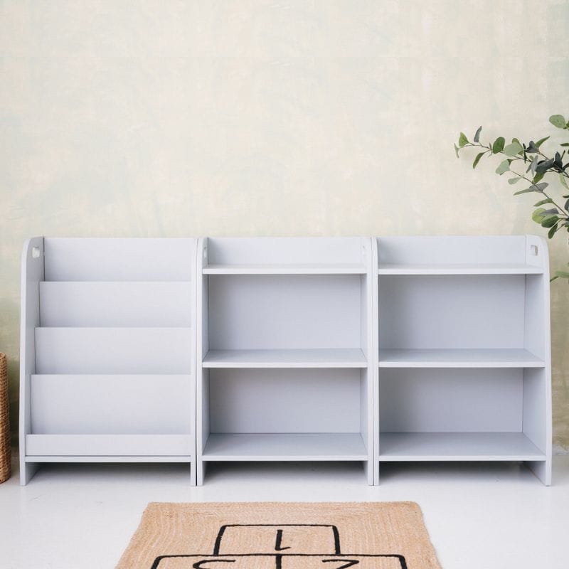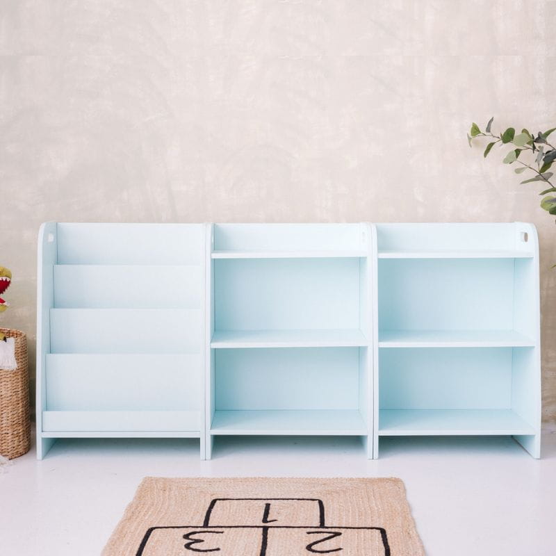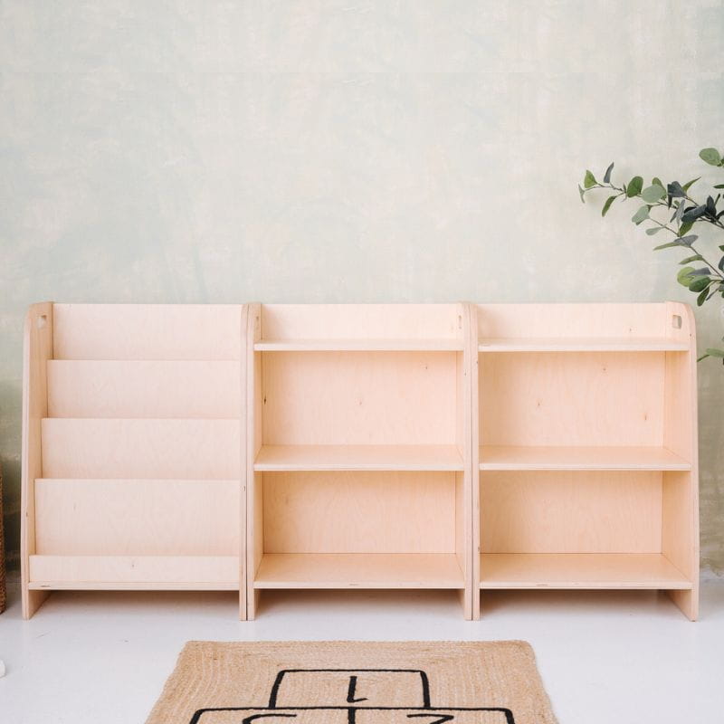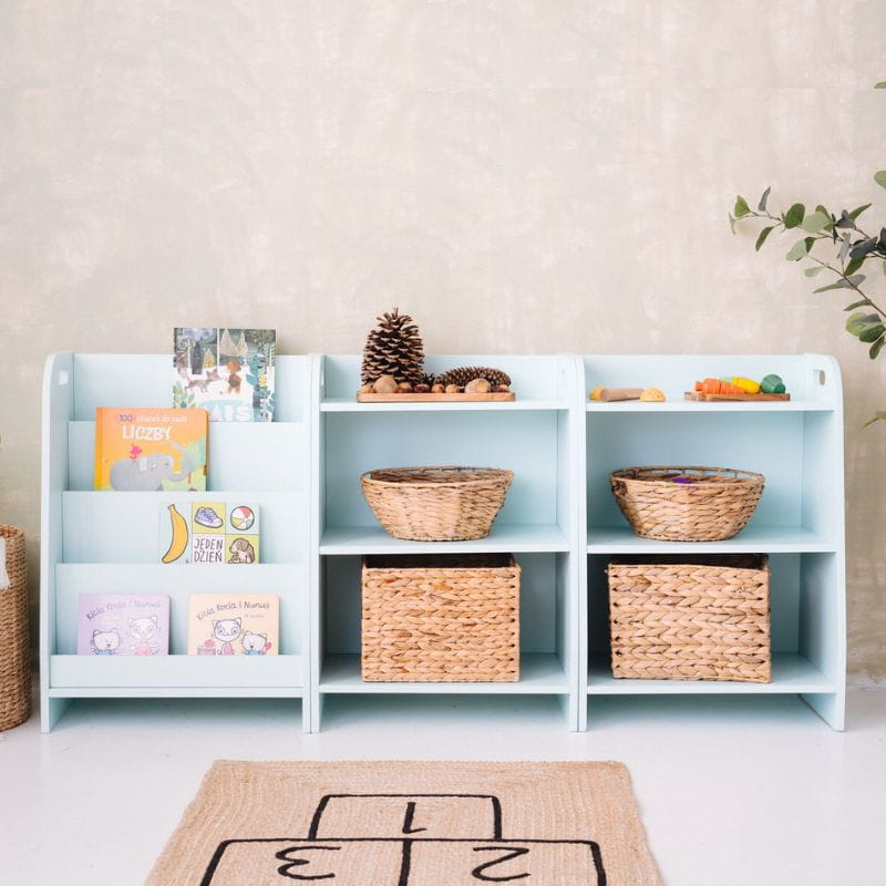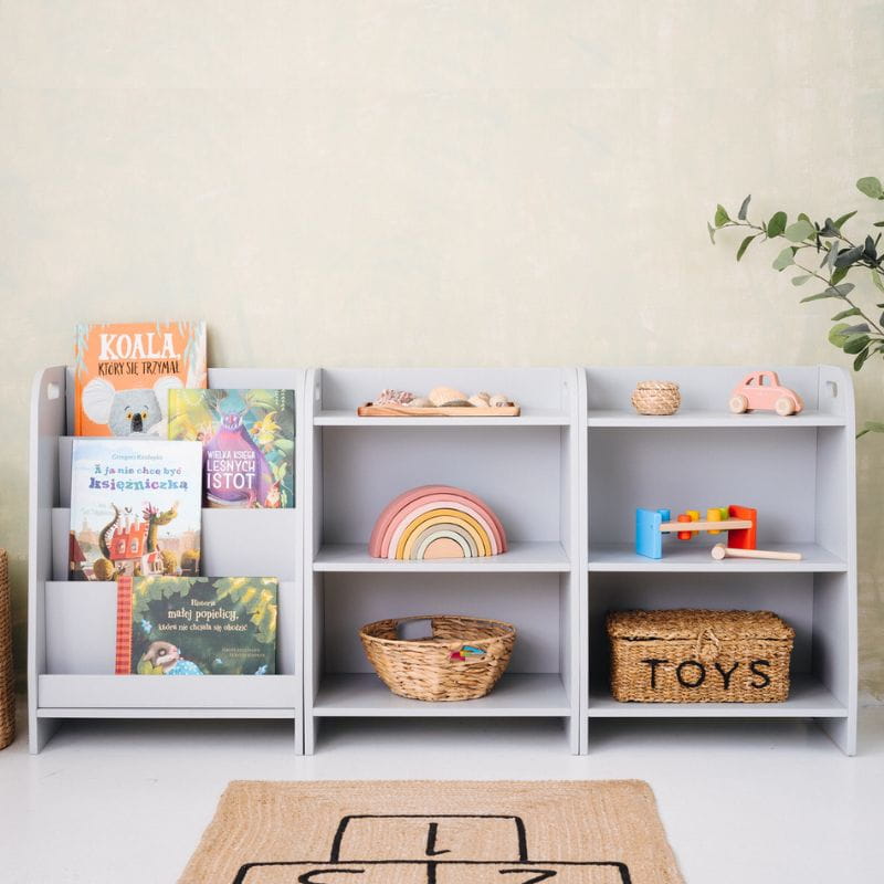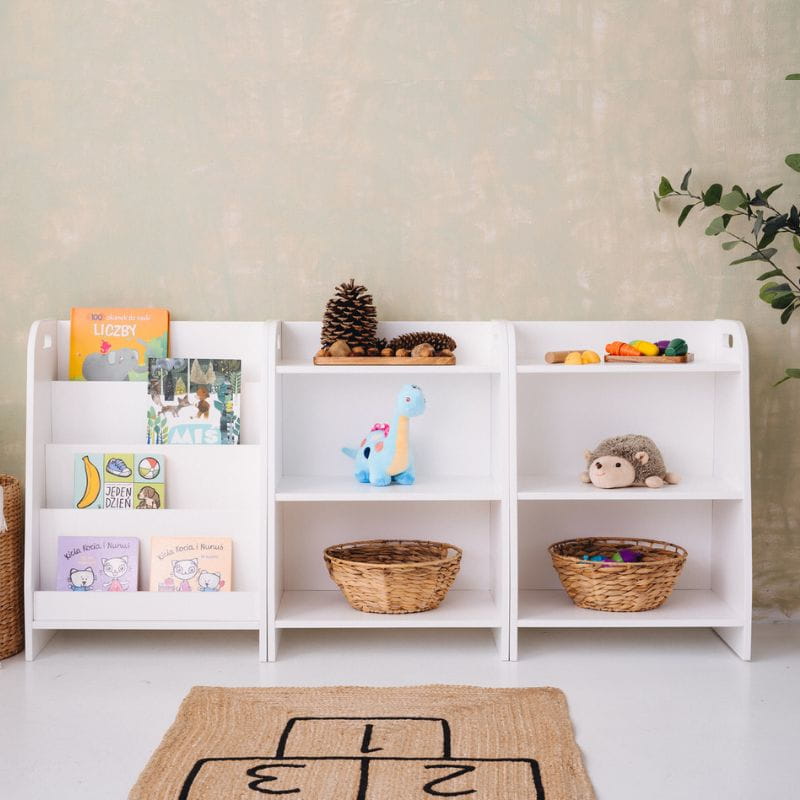Zestaw mebli Montessori dla dzieci - biblioteczka i dwa regały na zabawki