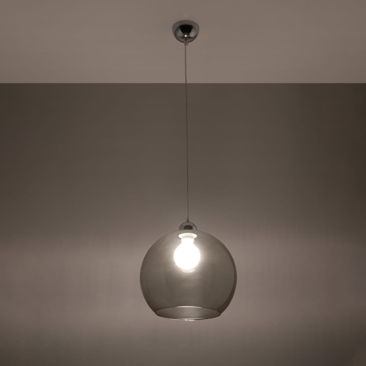 Klosz o kształcie kuli jest wykonany ze szkła, więc idealnie rozprasza światło w pomieszczeniu. W rezultacie dociera ono równomiernie we wszystkie zakątki i estetycznie się prezentuje.