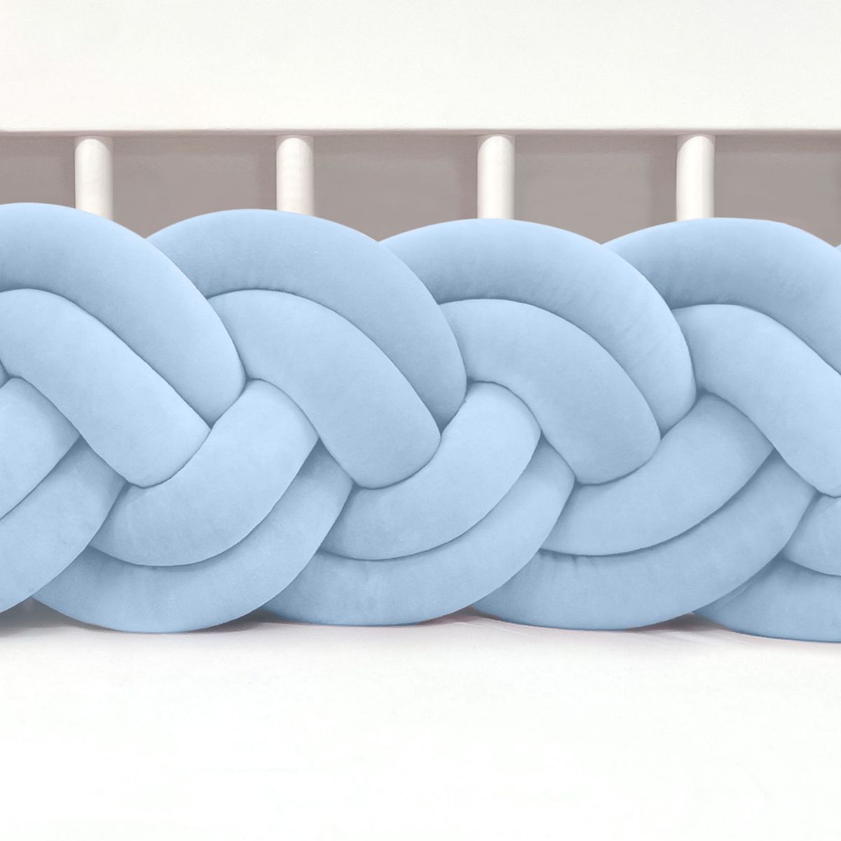 SUPEŁKOWE LOVE - OCHRANIACZ DO ŁÓŻECZKA WARKOCZ 4 PASMOWY WELUROWY BŁĘKITNY