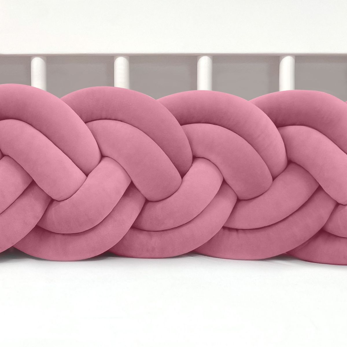 SUPEŁKOWE LOVE - OCHRANIACZ DO ŁÓŻECZKA WARKOCZ 3 PASMOWY WELUROWY BRUDNY RÓŻ