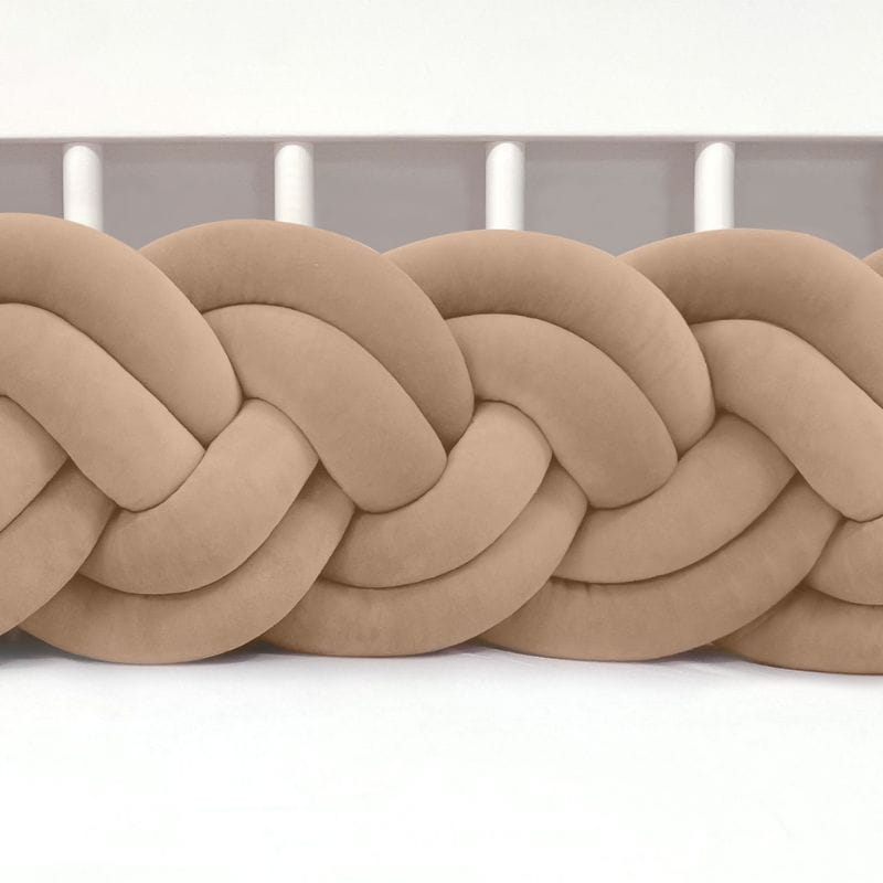 SUPEŁKOWE LOVE - OCHRANIACZ DO ŁÓŻECZKA WARKOCZ 4 PASMOWY WELUROWY KARMEL