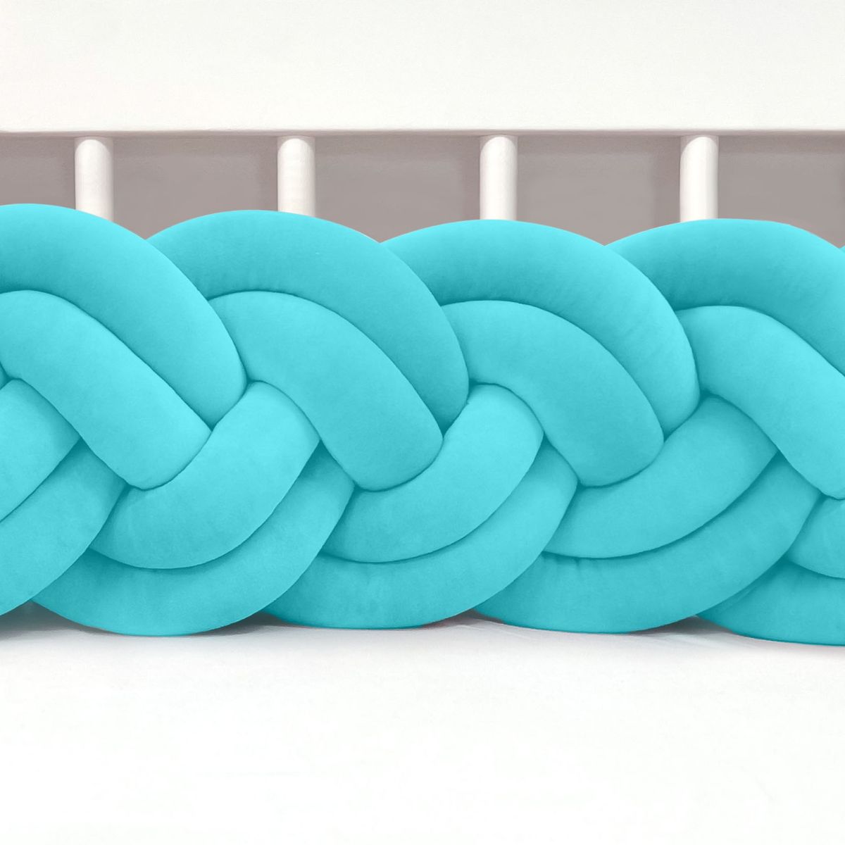 SUPEŁKOWE LOVE - OCHRANIACZ DO ŁÓŻECZKA WARKOCZ 4 PASMOWY WELUROWY TURKUSOWY