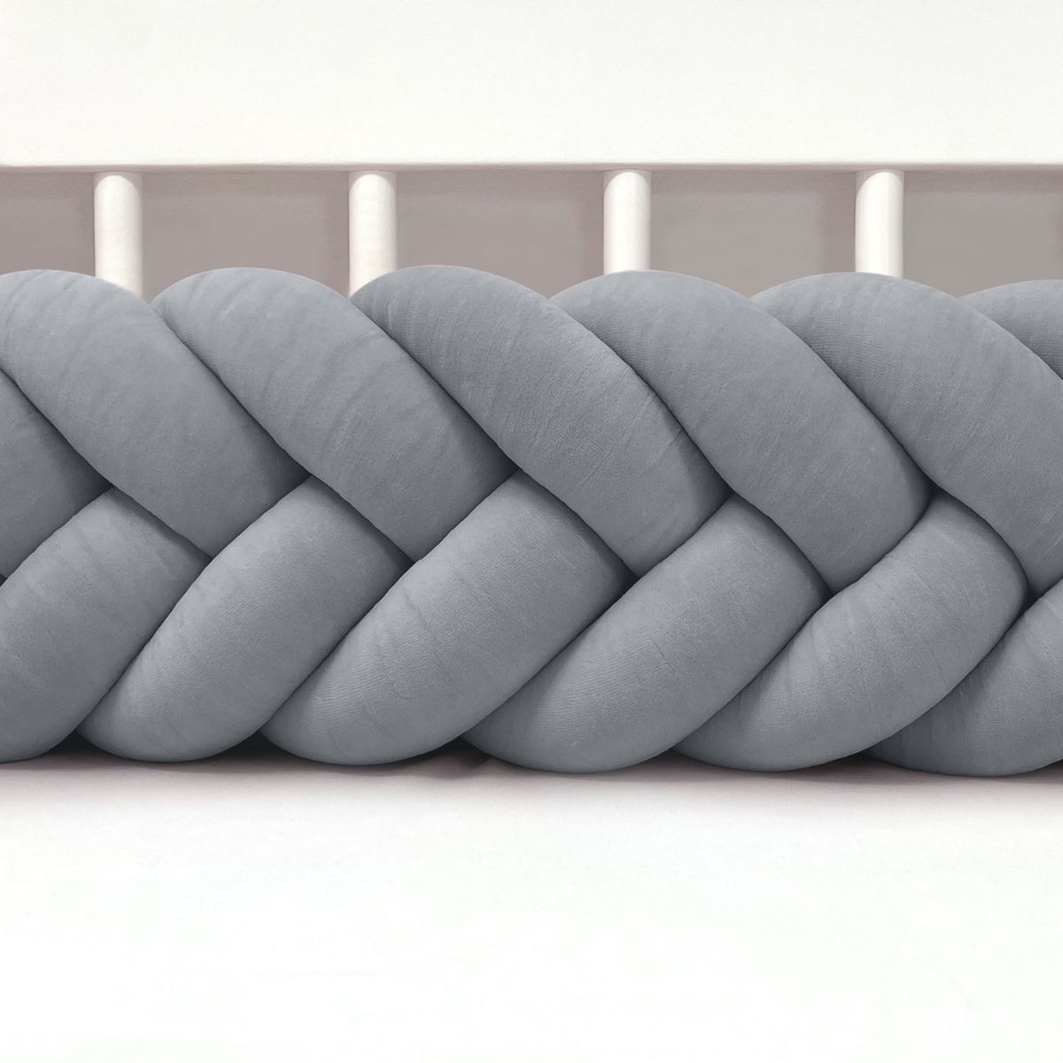 SUPEŁKOWE LOVE - OCHRANIACZ DO ŁÓŻECZKA WARKOCZ 3 PASMOWY WELUROWY JASNY SZARY