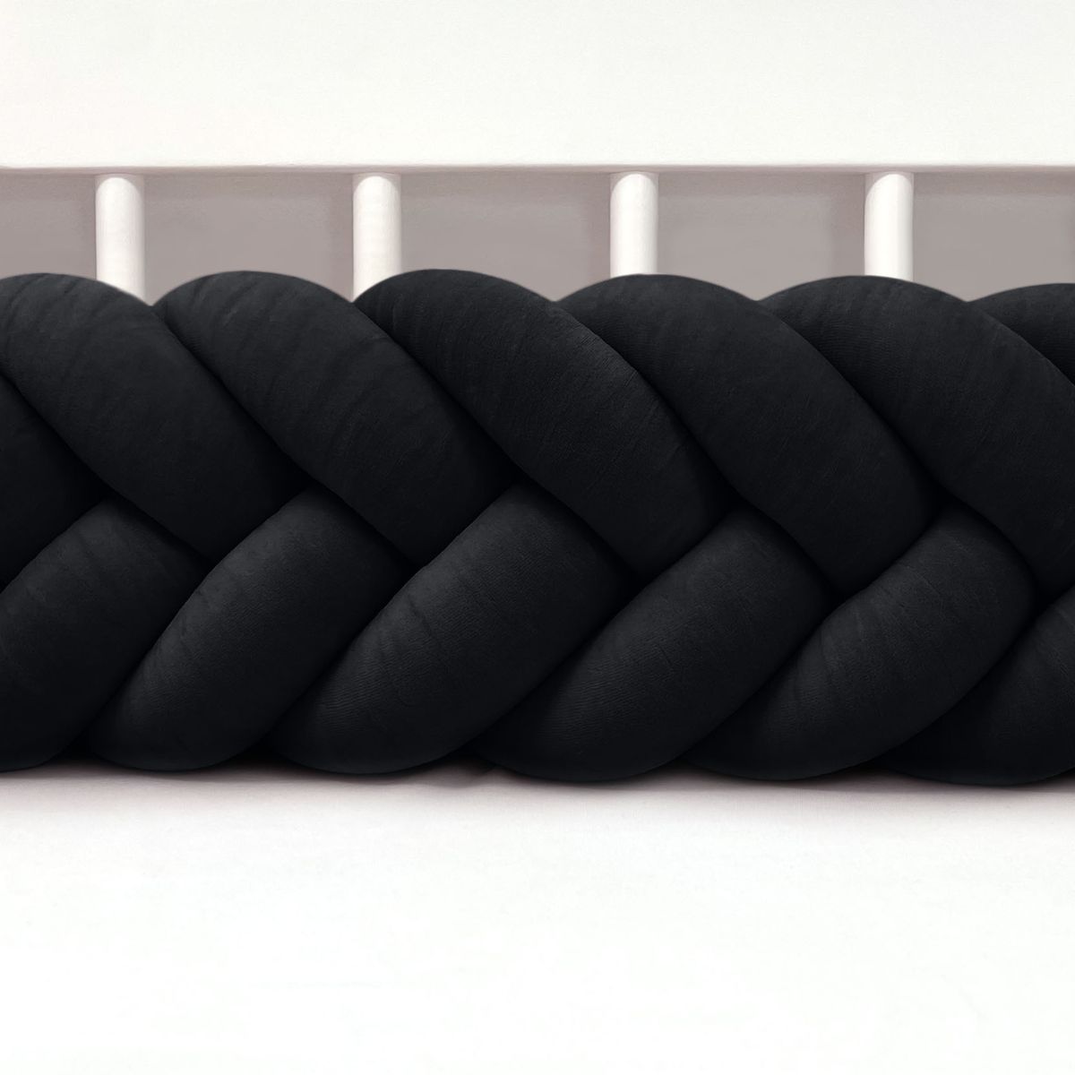 SUPEŁKOWE LOVE - OCHRANIACZ DO ŁÓŻECZKA WARKOCZ 3 PASMOWY WELUROWY CZARNY