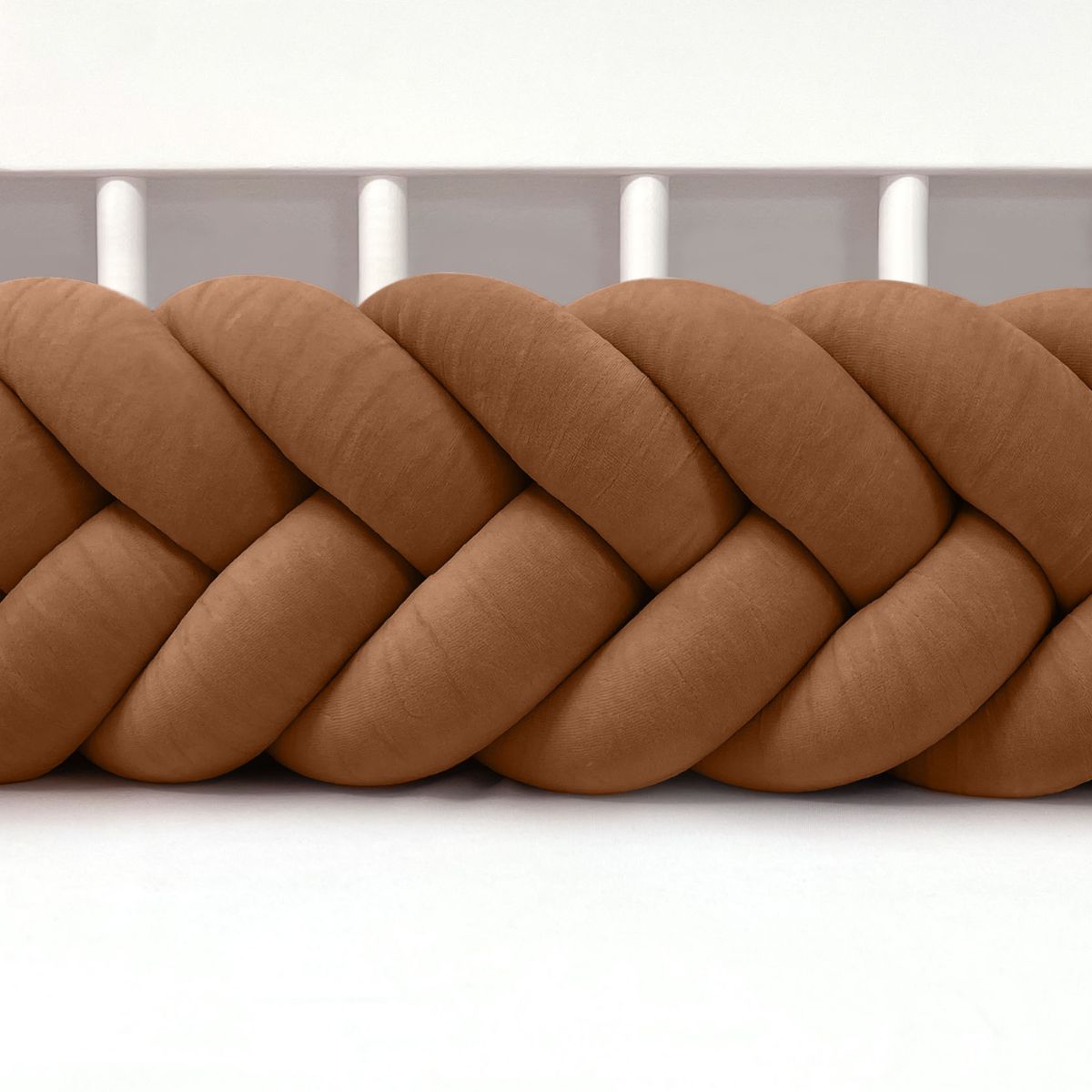 SUPEŁKOWE LOVE - OCHRANIACZ DO ŁÓŻECZKA WARKOCZ 3 PASMOWY WELUROWY CYNAMONOWY