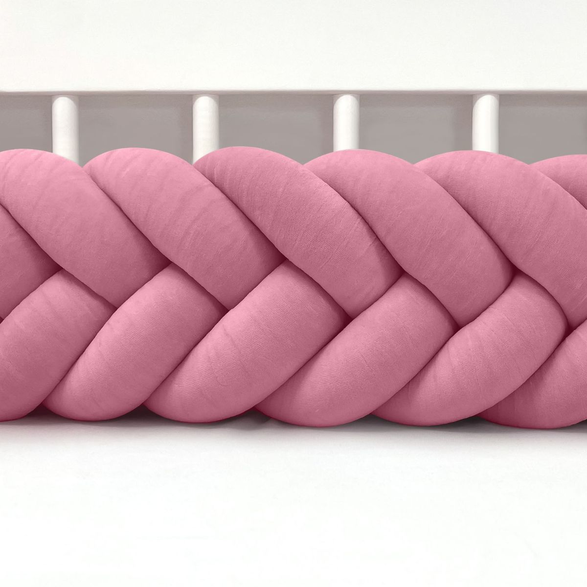 SUPEŁKOWE LOVE - OCHRANIACZ DO ŁÓŻECZKA WARKOCZ 4 PASMOWY WELUROWY BRUDNY RÓŻ