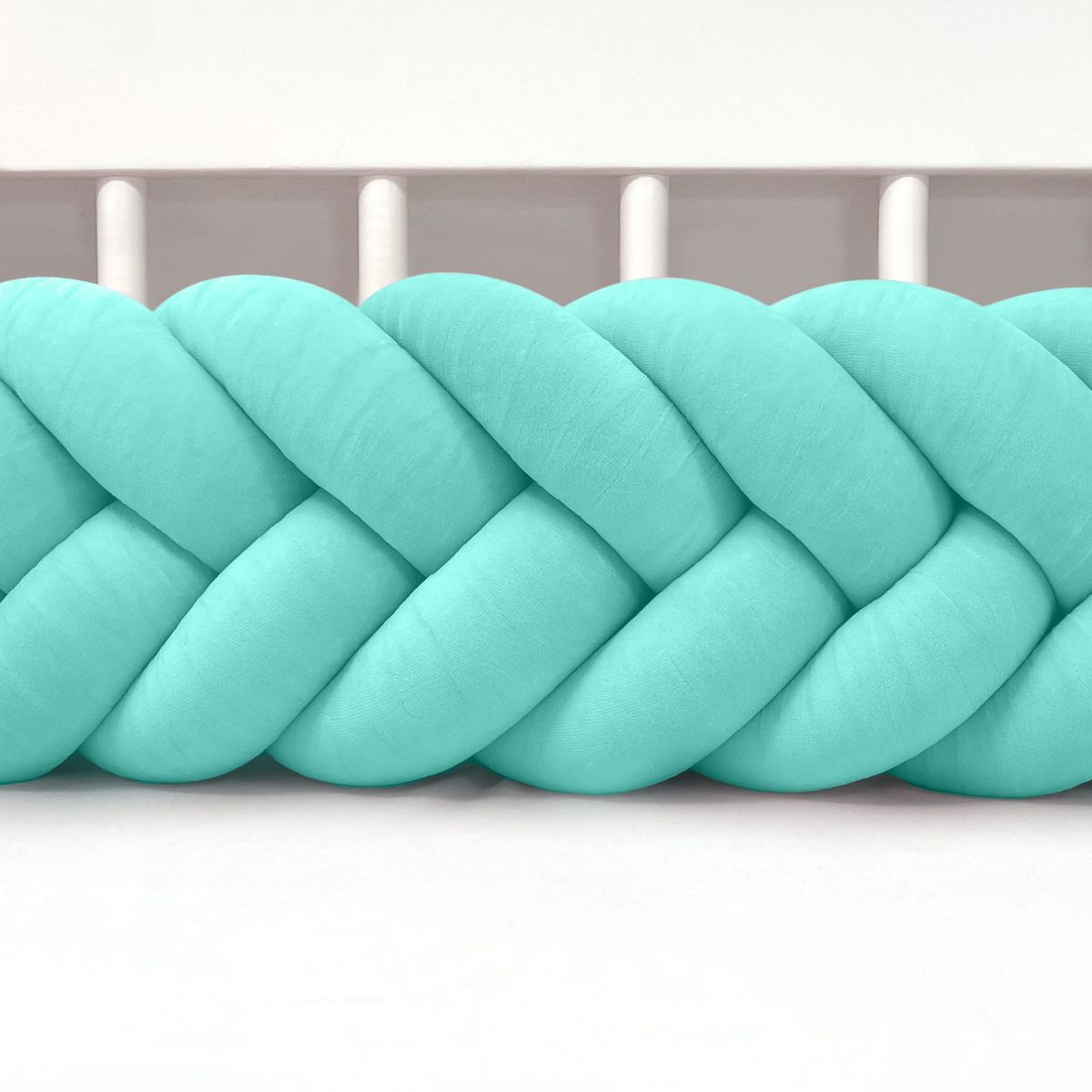 SUPEŁKOWE LOVE - OCHRANIACZ DO ŁÓŻECZKA WARKOCZ 4 PASMOWY WELUROWY MIĘTOWY