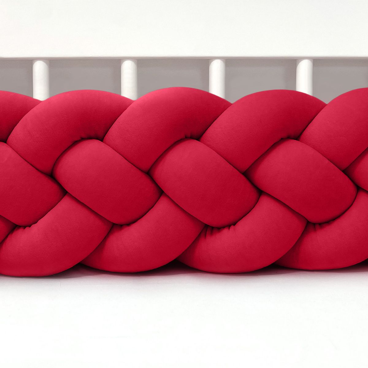 SUPEŁKOWE LOVE - OCHRANIACZ DO ŁÓŻECZKA WARKOCZ 4 PASMOWY WELUROWY CZERWONY