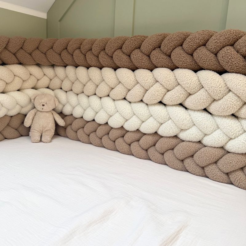 Ochraniacz warkocz jest wykonany z miękkiego i przyjemnego w dotyku materiału Boucle, aby zapewnić maluszkowi komfort podczas snu i zabawy.