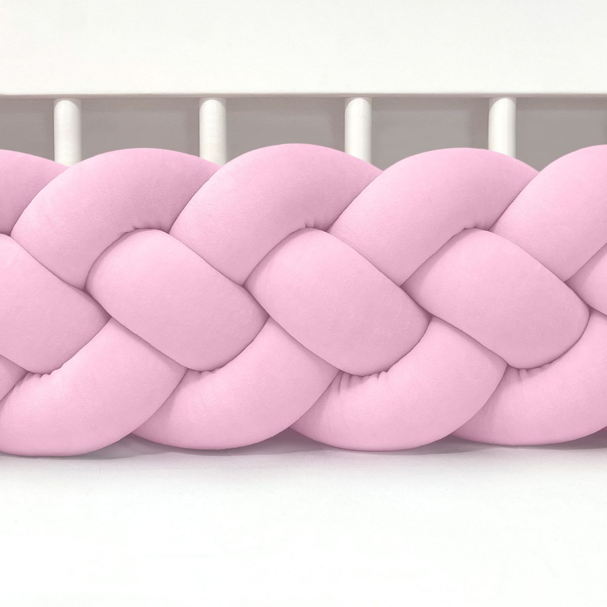 SUPEŁKOWE LOVE - OCHRANIACZ DO ŁÓŻECZKA WARKOCZ 3 PASMOWY WELUROWY PUDROWY RÓŻ