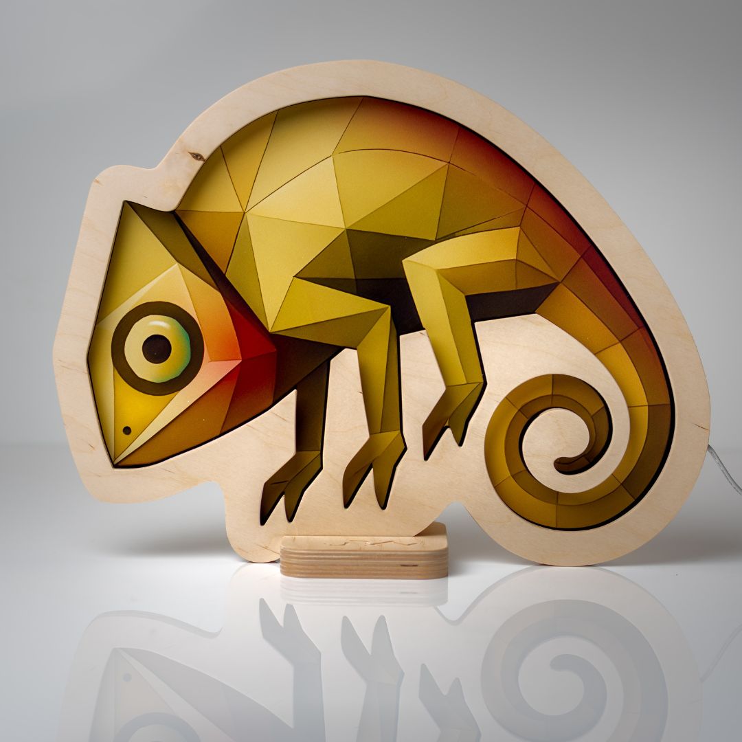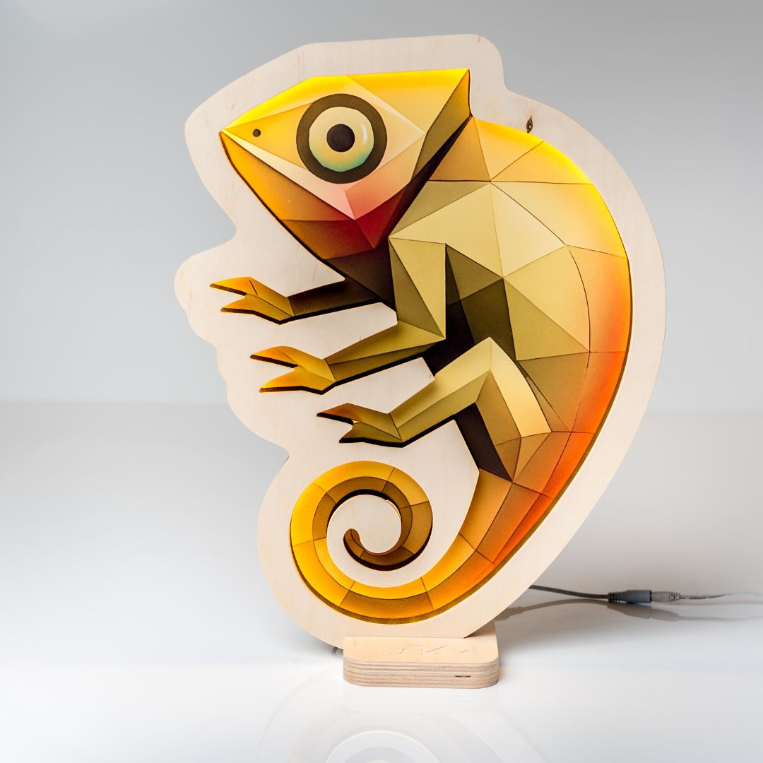 Lampka nocna ze sklejki – Kameleon
