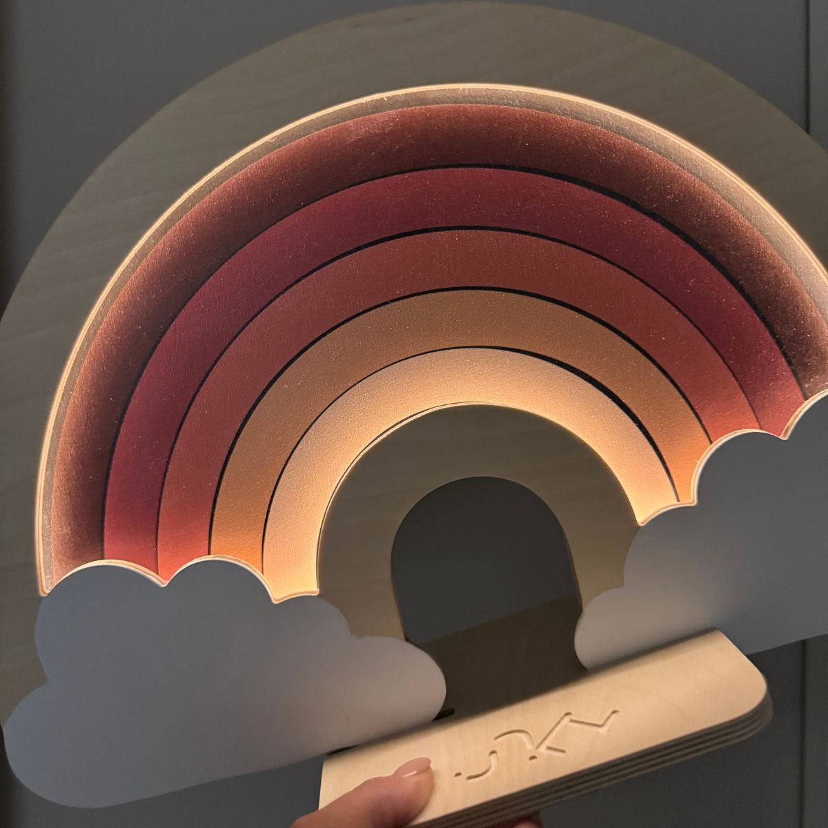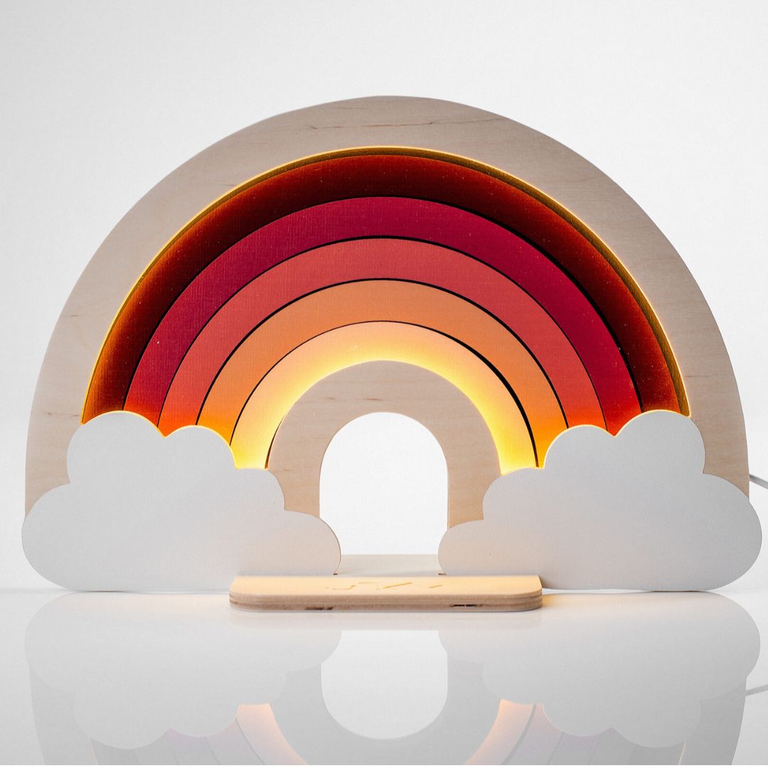 Cały proces projektowania i produkcji odbywa się w Polsce, co gwarantuje dbałość o jakość i wspiera lokalnych twórców. Lampa posiada dotykowy włącznik z funkcją regulacji natężenia światła, dzięki czemu można dostosować jasność do potrzeb – idealna zarówno do wieczornego czytania bajek, jak i jako delikatne światło nocne.